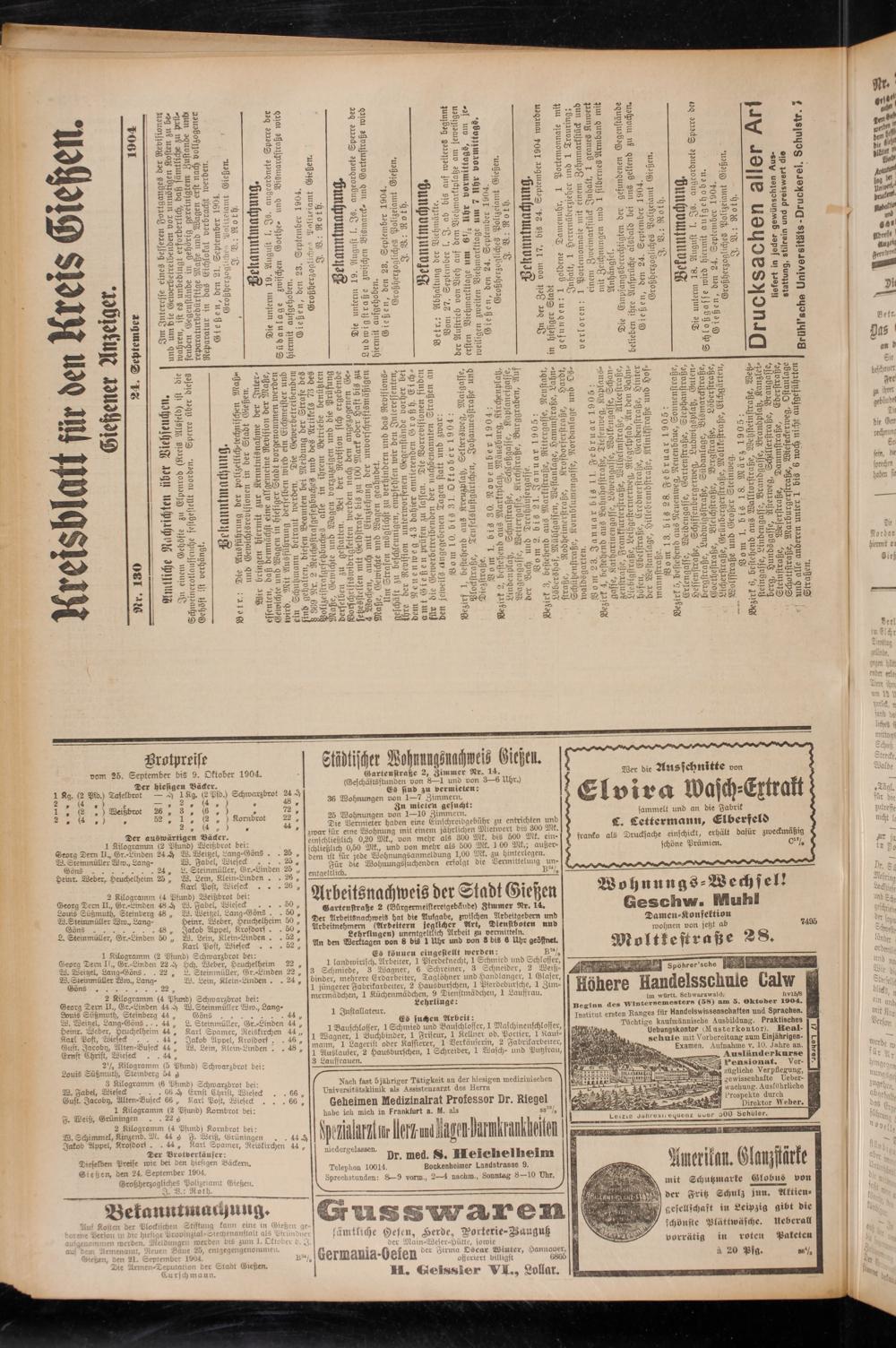 Der Brotvertäufer: Dieselben Preise wie bei den hiesigen Bäckern. Gießen, den 24. September 1904.