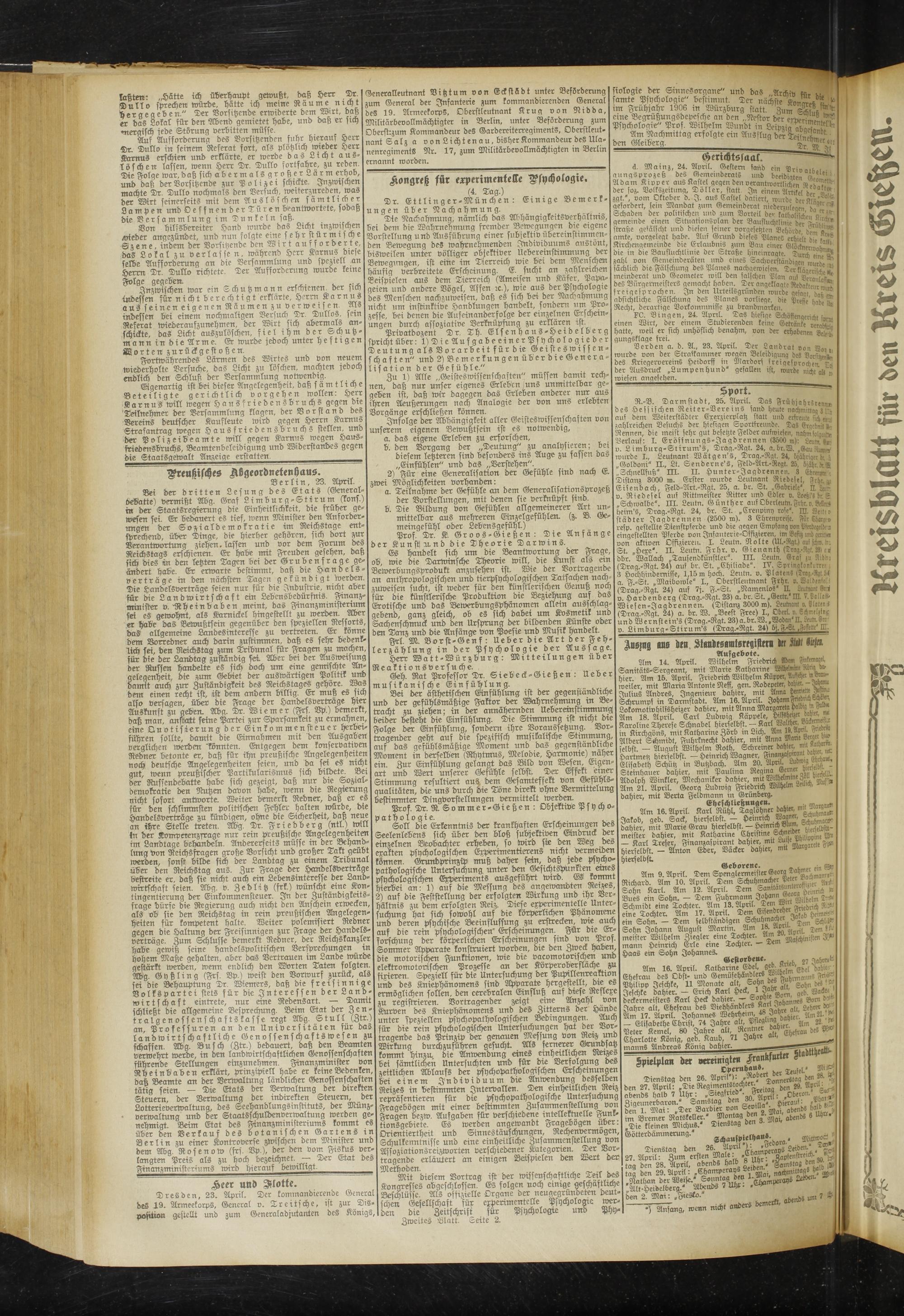_____===========____ä. Mainz, 24. April. Gestern fand ein Drivatb-, Kongreß für erp-rim-nt-ll- Psychologie. KÄlt
