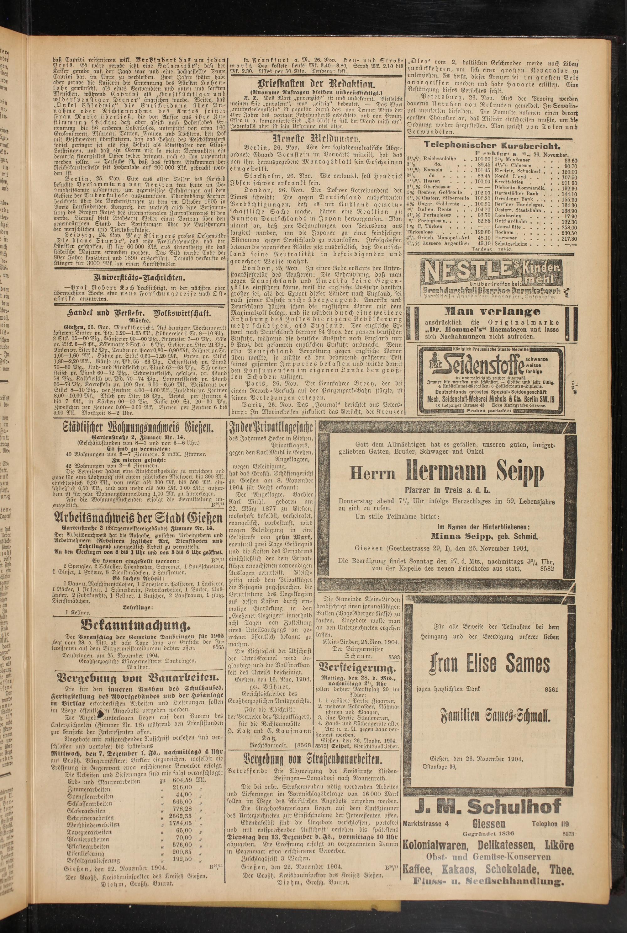 Gießen, den 16. Nov. 1904.