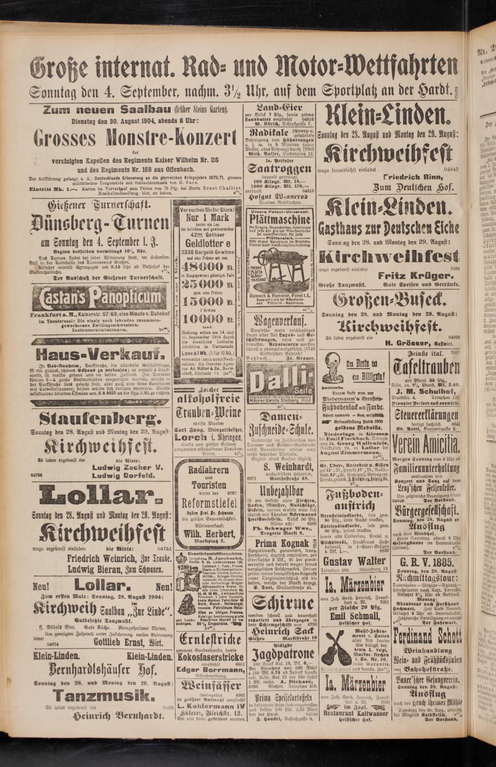 Dienstag den 30. August 1904, abends 8 Uhr: