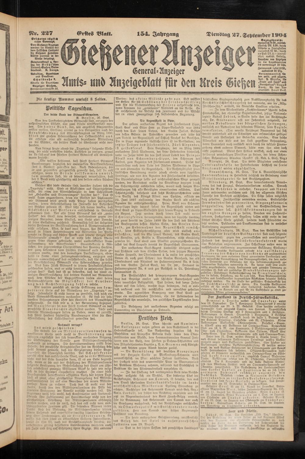 Dir heutige Kummer umfaßt 8 Seiten.