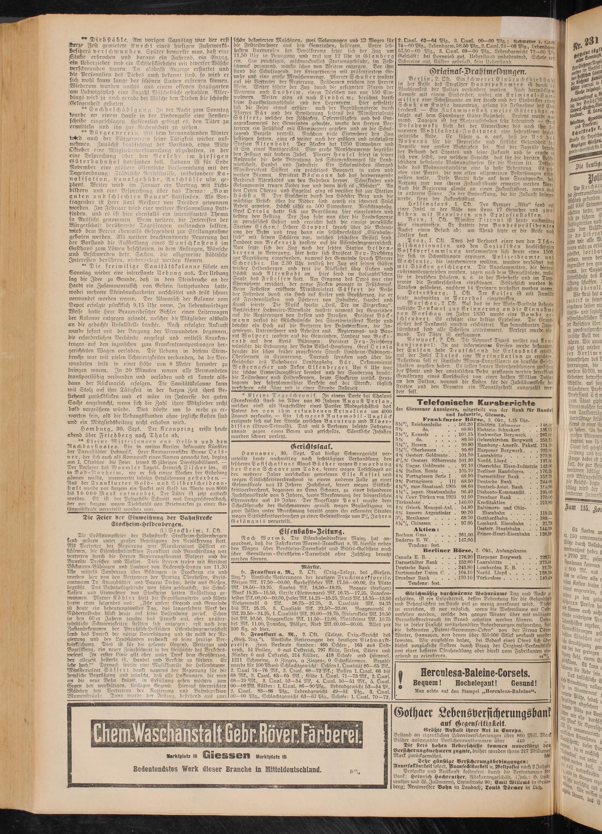 Telefonische Kursberichte des Giessener Anzeigers, mitgeteilt von der Bank fllr nnd Industrie, Giessen.