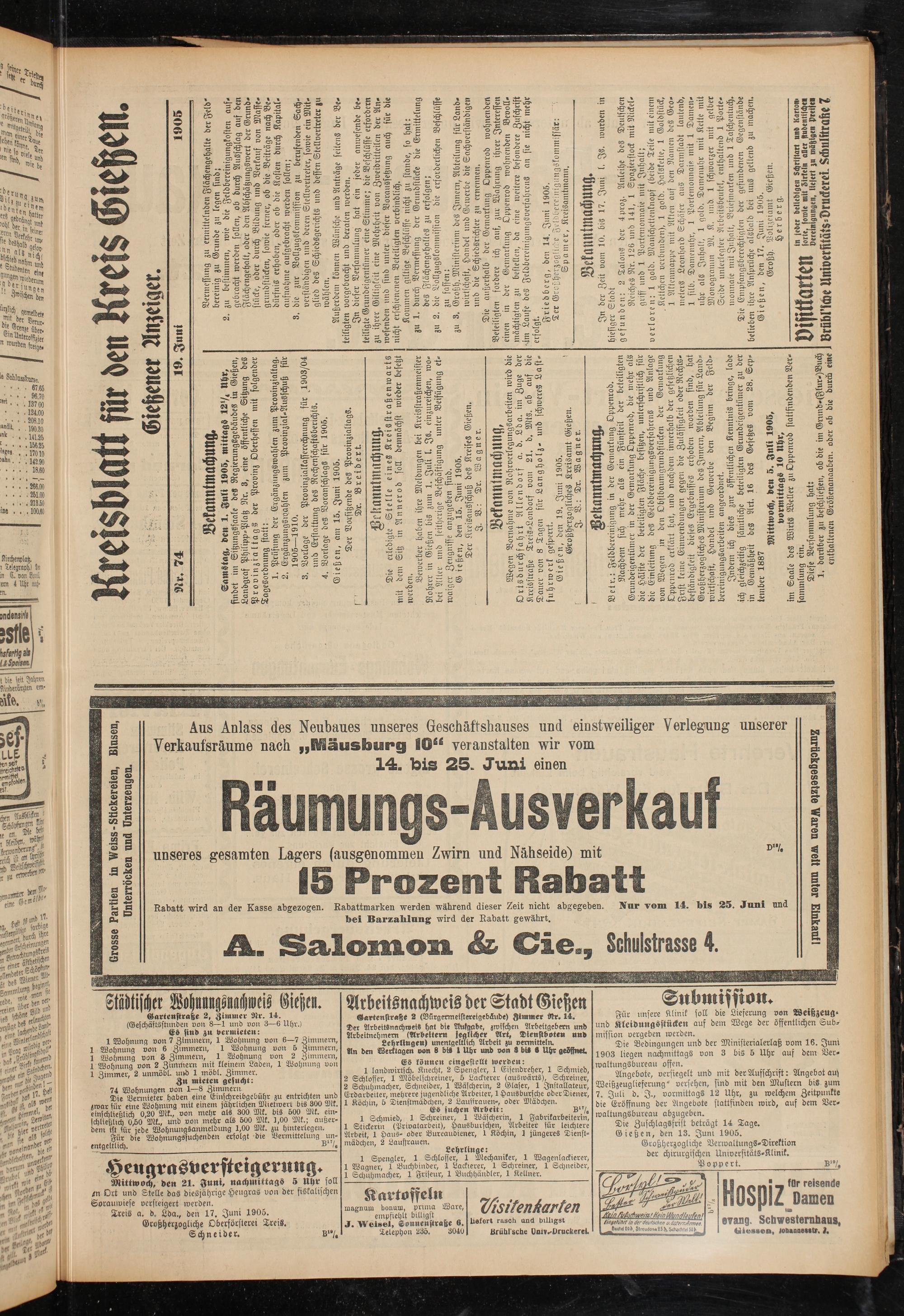 Gießen, den 13. Jun: 1905.