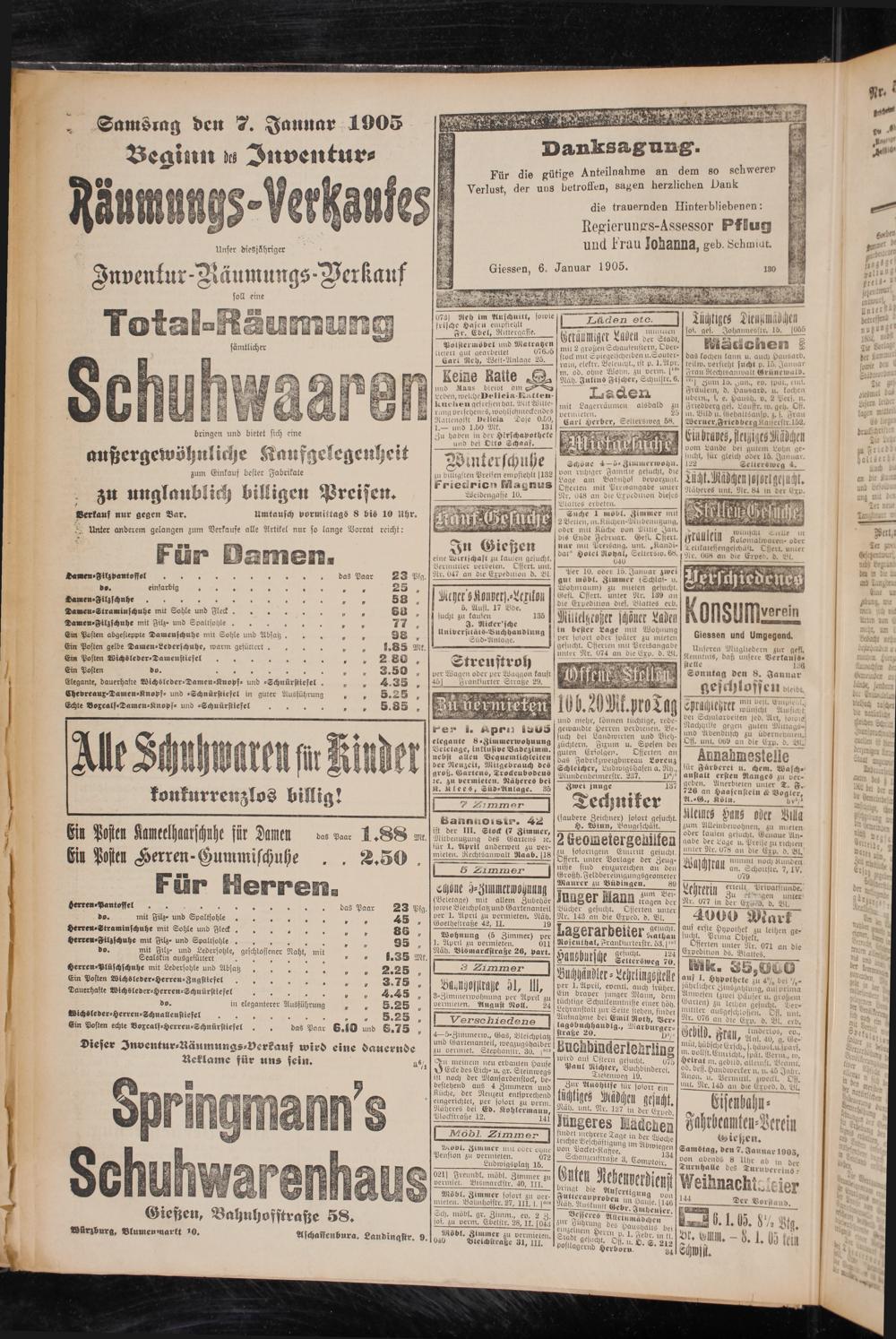 ‘ Samsrag den Januar 1905 Vegiun M Inventur-