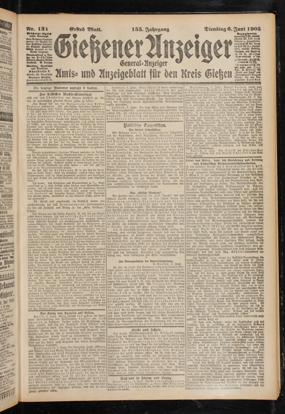Dienstag 6. Juni 1905