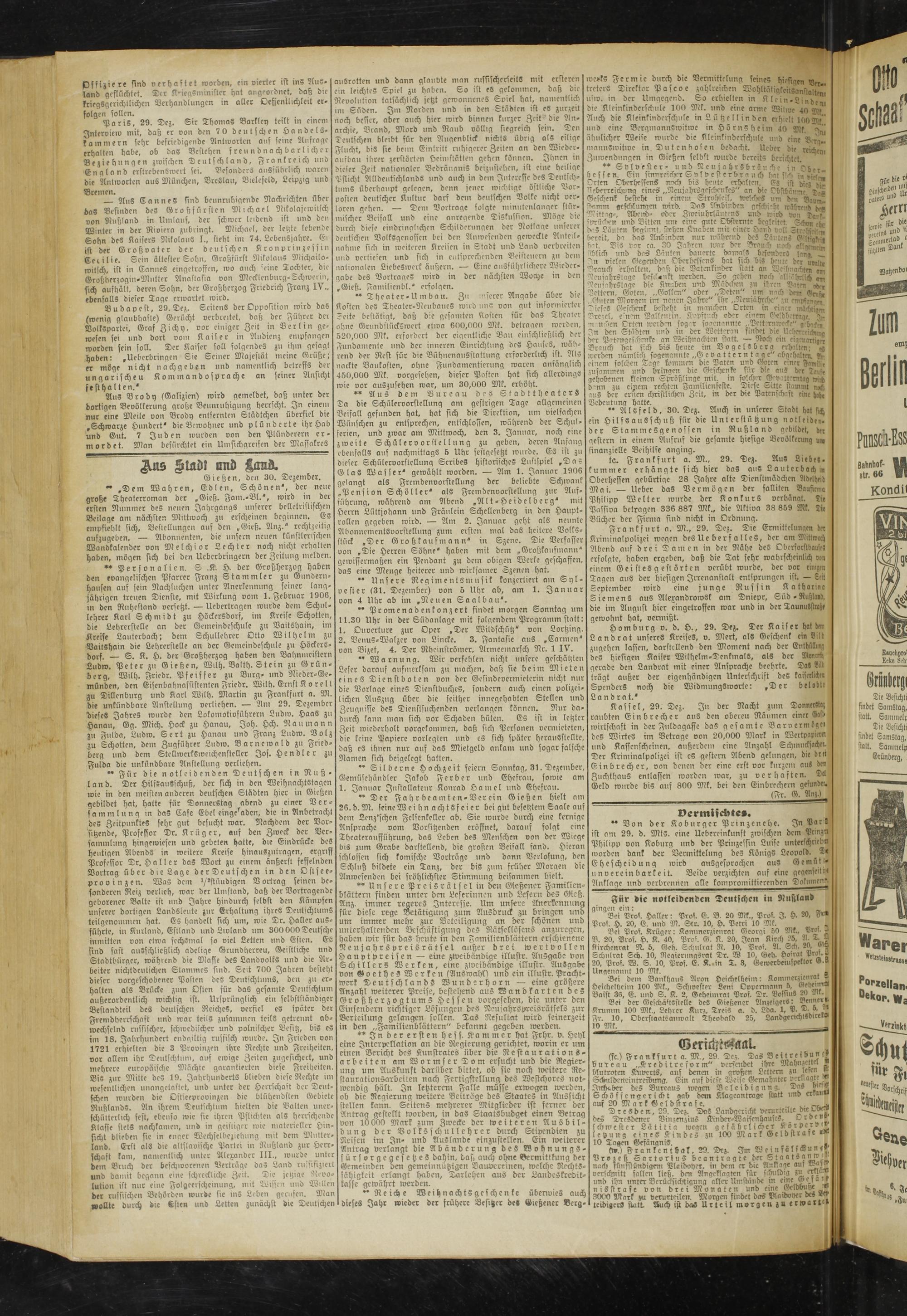 "'Der Fahr beamten-Verein Gießen hielt am 26.d.M. seineWei hn achtsf eier bei gut besetztem Saale auf dem Lenz'schen Felsenkeller ab. Sie wurde durch eine kernige Ansprache vom Vorsitzenden eröffnet, darauf folgt eine Theateraufführung, das Leben deS Menschen von ber Wiege bis zum Grabe darstellend, die großen Beifall fand. Hieran schlossen sich komische Vorträge und bann Verlosung, den Schluß bildete ein Tanz, ber bis zum früher Morgen die Anwesenben bei fröhlichster Stimmung beisammen hielt.