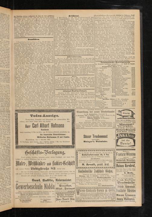 Die Beerdigung findet Samstag, den 7. Oktober, mittags 1 Uhr vom Trauerhause’ Kirchstrasse 13, aus statt.