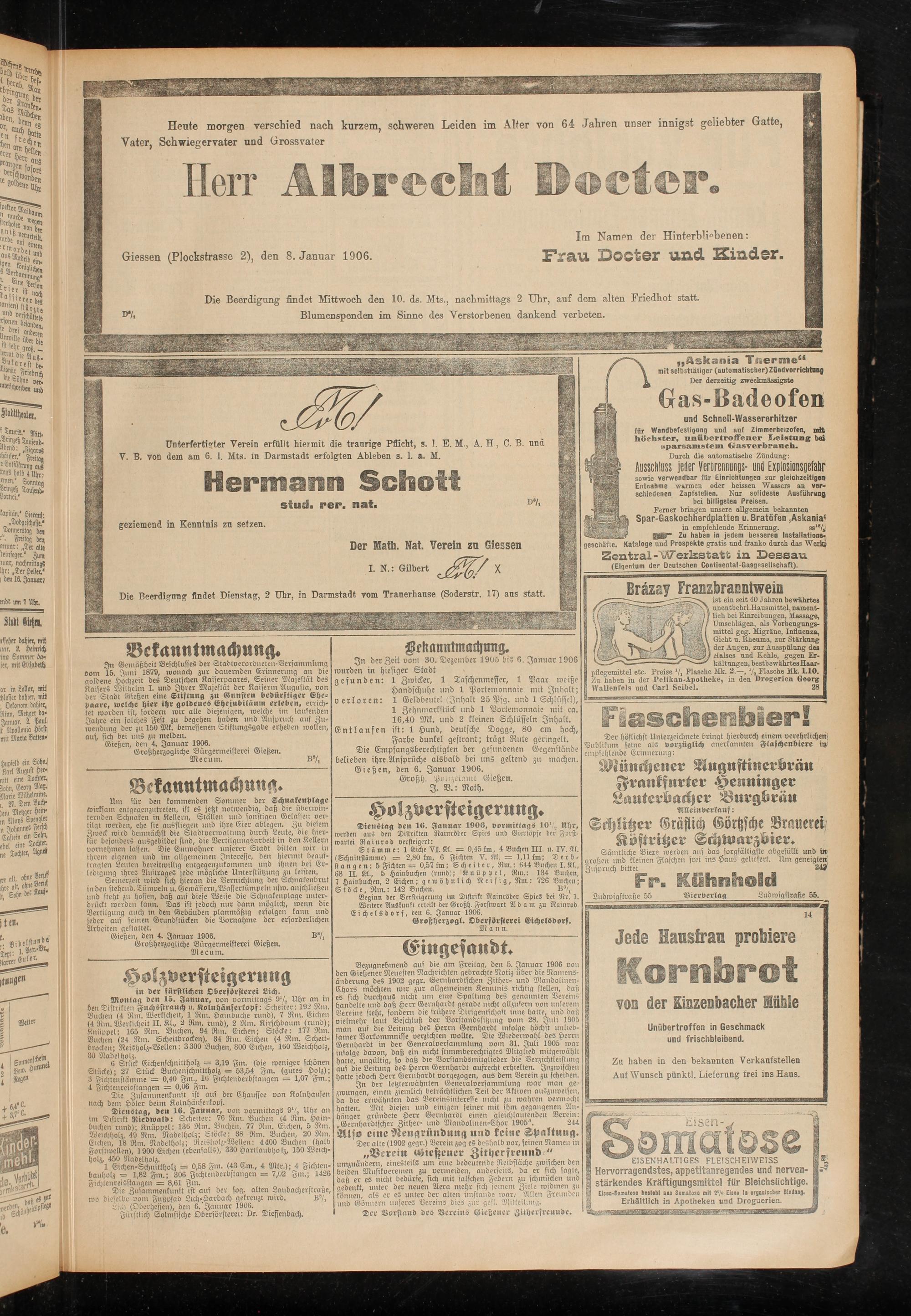Giessen (Blockstrasse 2), den 8. Januar 1906.