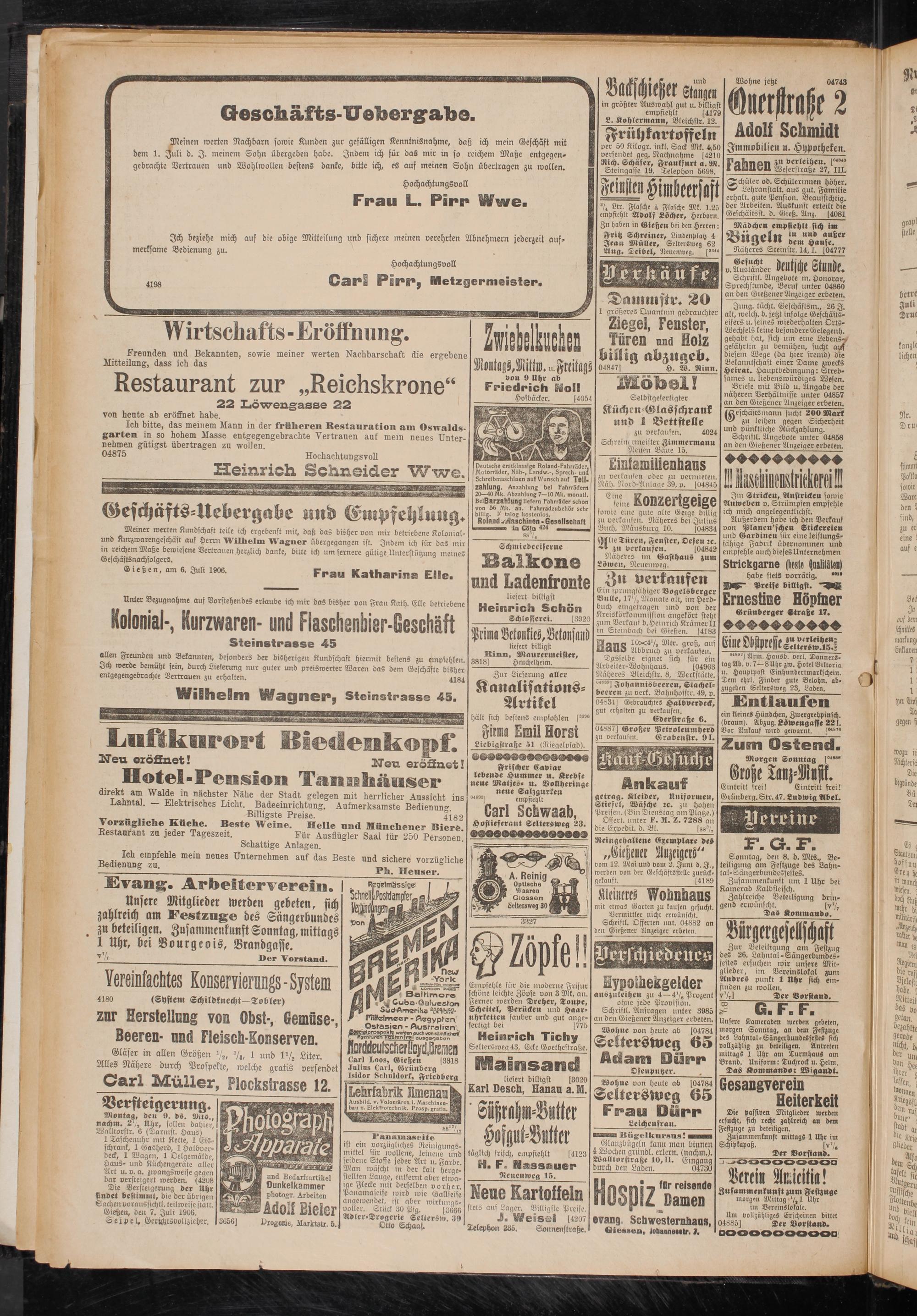 Gießen, den 7. Juli 1906. Seipel. Gerichtsvollzieher.