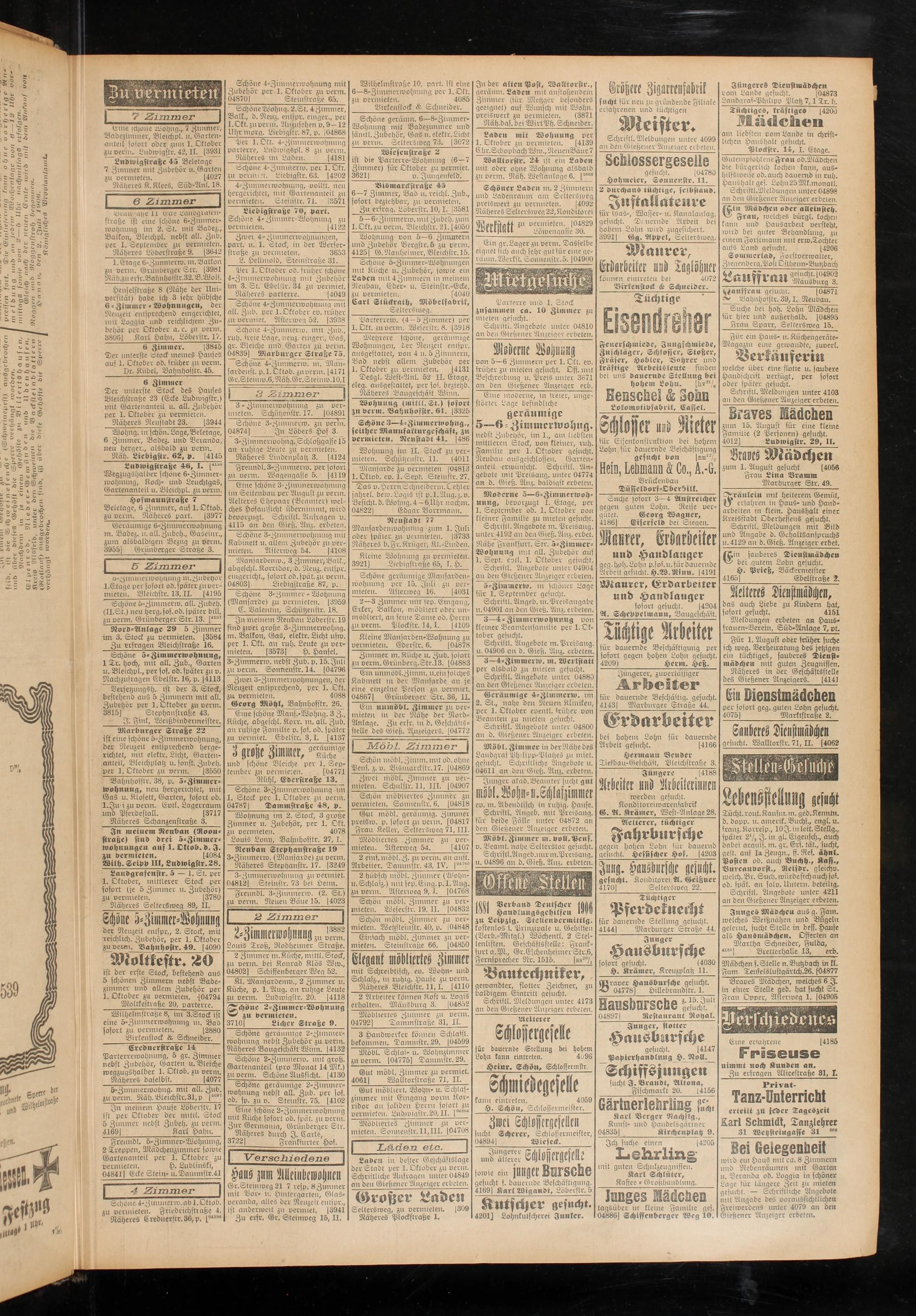 Schristl. Meldungen unter 4173 an den Gießener 'Anzeiger erbeten.