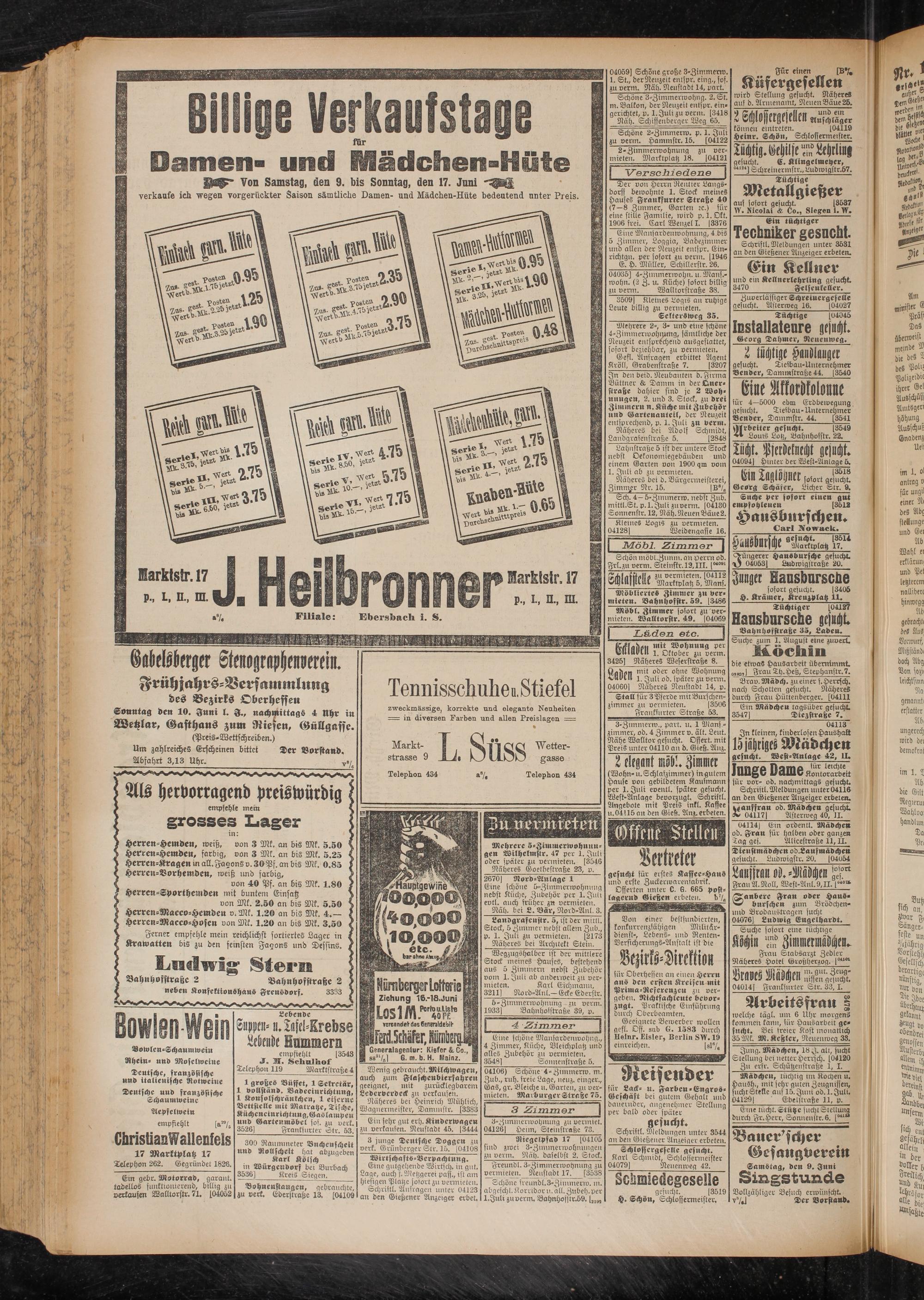 | Hümber^gr Lotterie | 'm Ziehung 16.-18,Juni | liosi/nn^ W vsrcendel das Cenenldebib b UÄMUr,MW Generalagentur: Kiefer &, Co., 88sl/ßl G. m. b. H. Mainz.