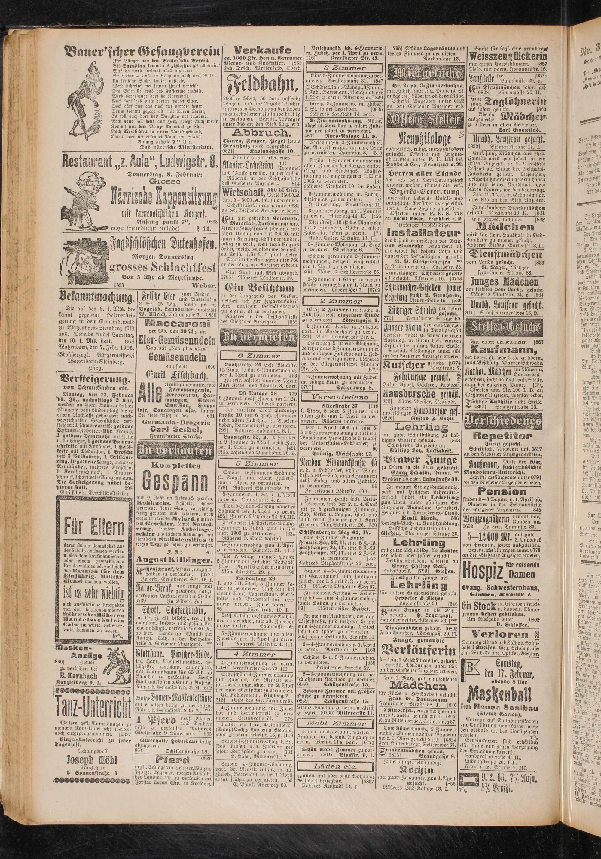 des Gießener Anzeigers. (853 vermieten Lvweugaste V. 2121 ------------