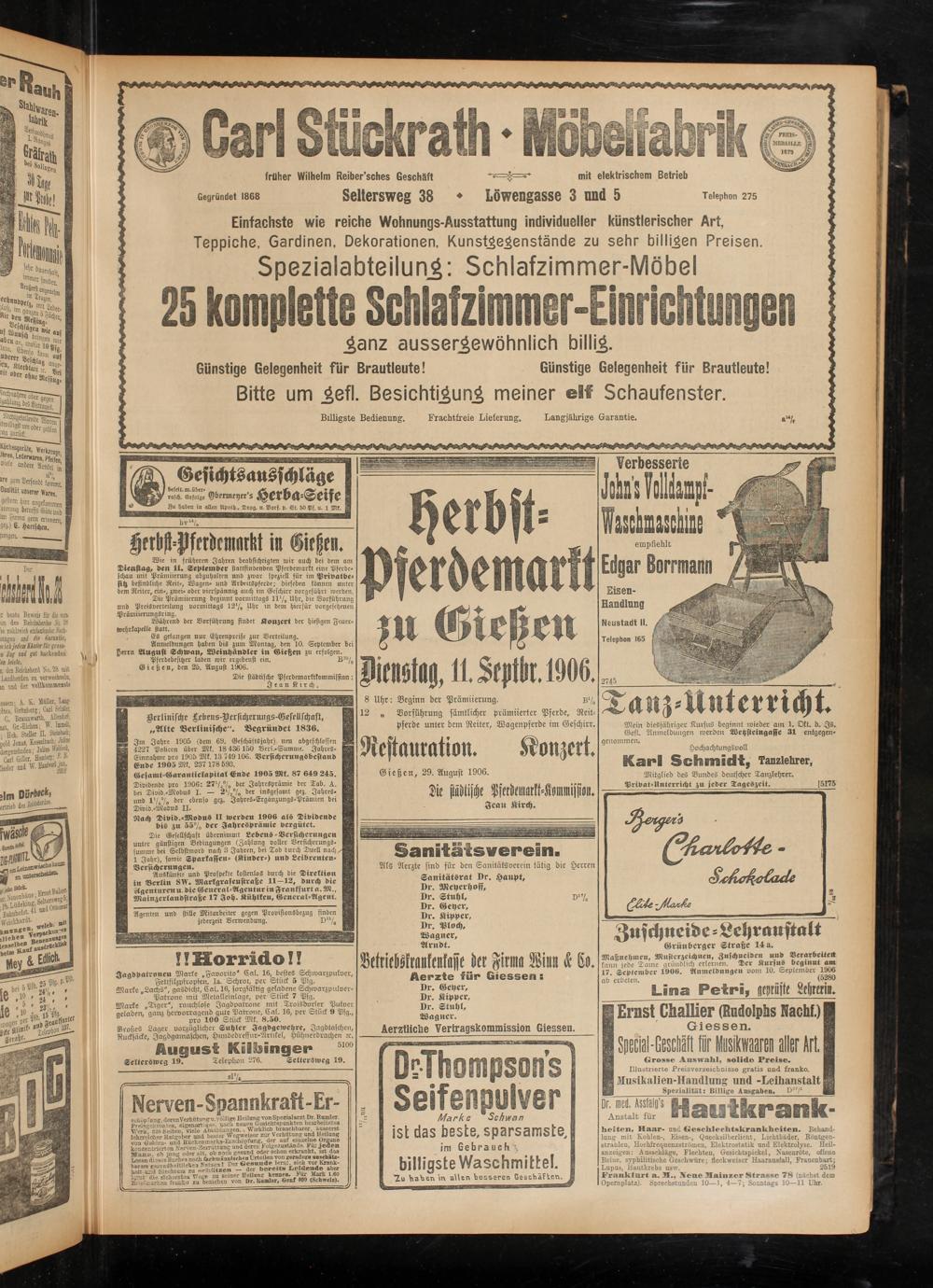 herbst- pserdemarkt pi Gießen Dikhstag, 11. Srptk. 1906. 8 Uhr: Beginn der Prämiierung. b1/»