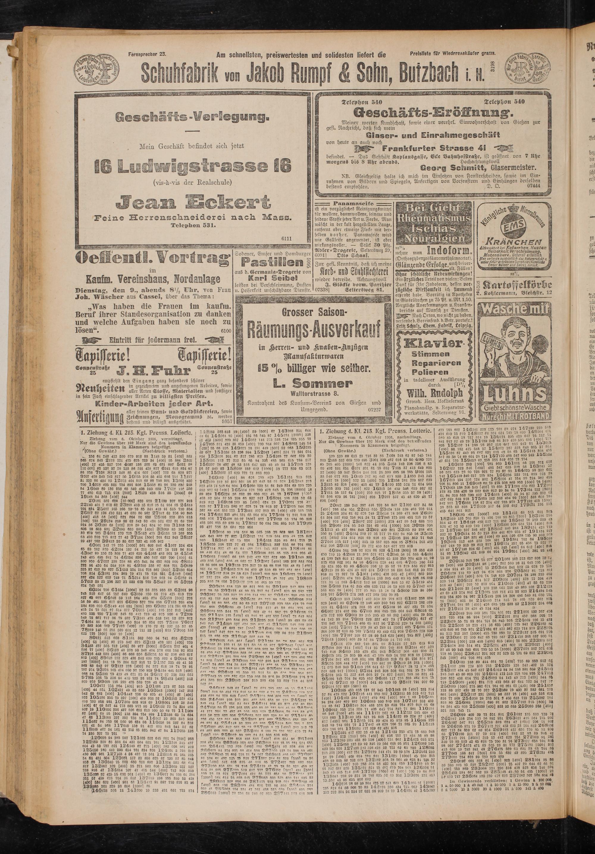 I. Ziehung 4. KL 215. Kgl. Preuss. Lotterte.