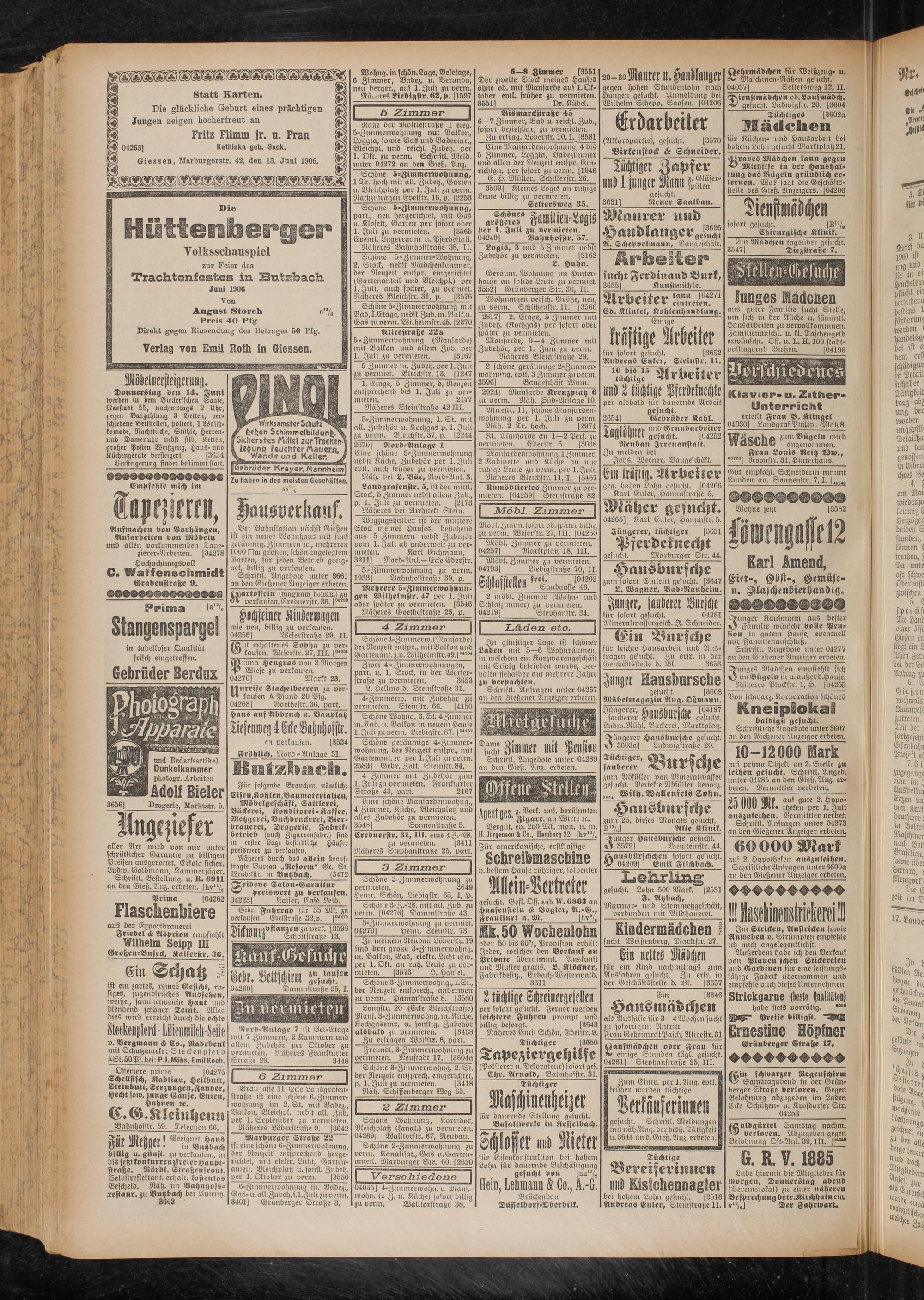 Giessen, Marburgerstr. 42, den 13. Juni 1906.