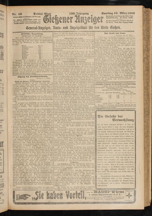 General-Anzeiger, Amts- und Anzeigeblatt für den Kreis Gießen.