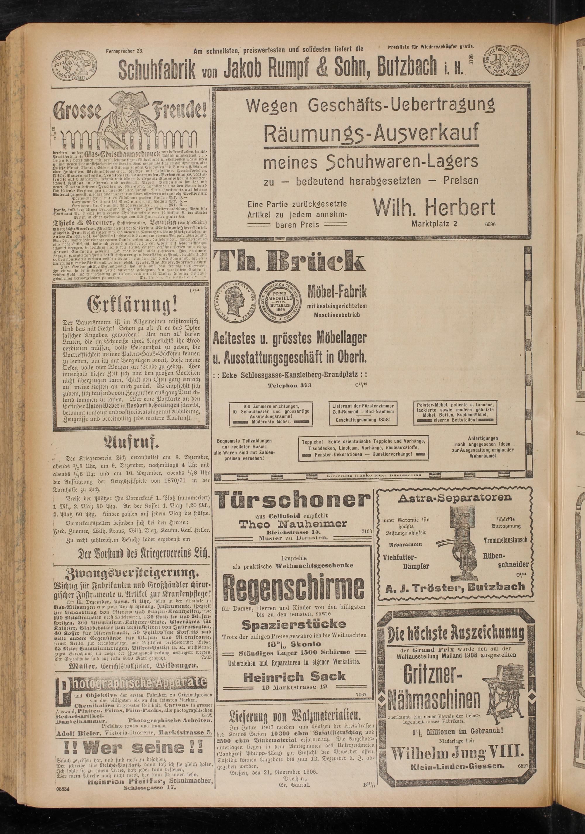 Gießen, den 21. November 1906. Diehm,