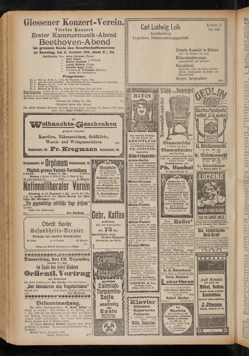 im grossen Saale des GeselischaHsvereins am Sonntag, dem 16. Dezember 1906, abends 51/i Uhr