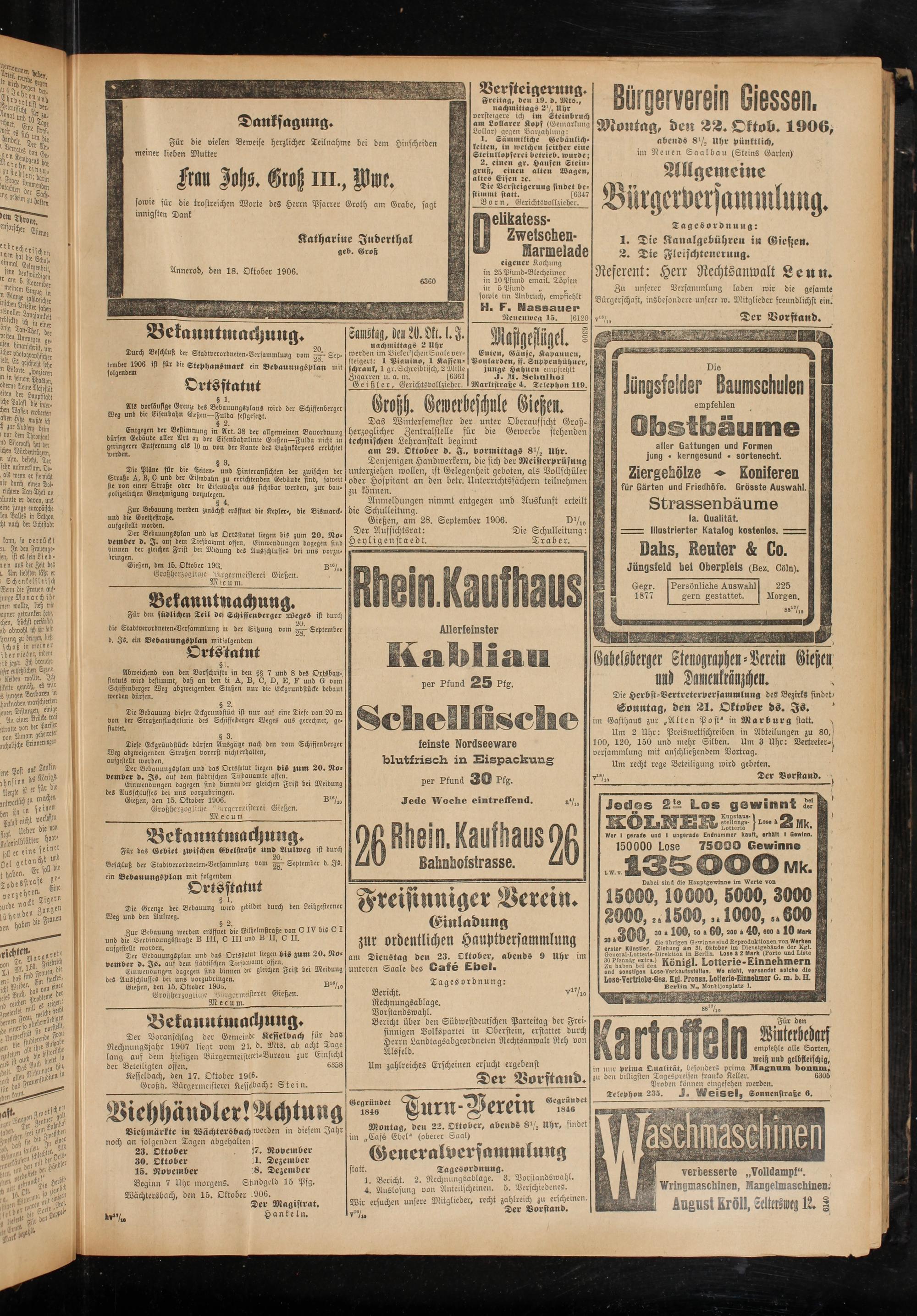 Bürgerverein Giessen. Montag, den ÄÄ. Oktob. 1906, abends 81/,, Uhr pünktlich, im Reuen Saalbau (Steins Garten)