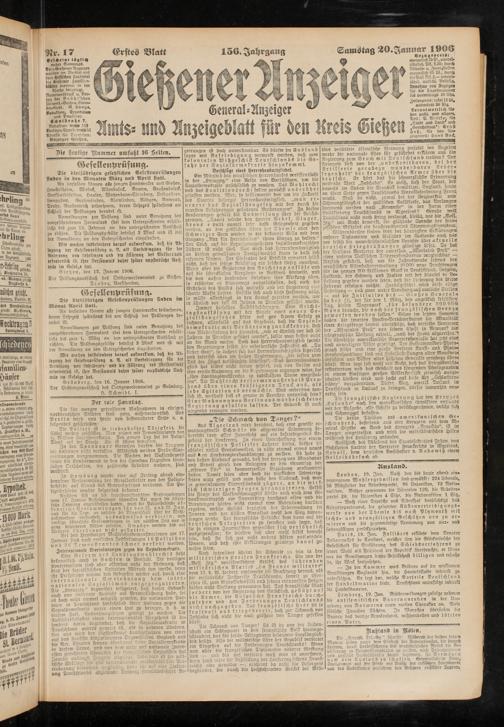 De:u Gießener ^l^ctqer werden im Wechsel nut dem hessischen Landwirt die Gießener Kamilicn. blätler viermal in der