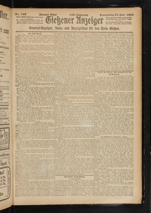 143 Zweites Blatt 1^6. Jahrgang Donnerstag Äl.Ium 1906