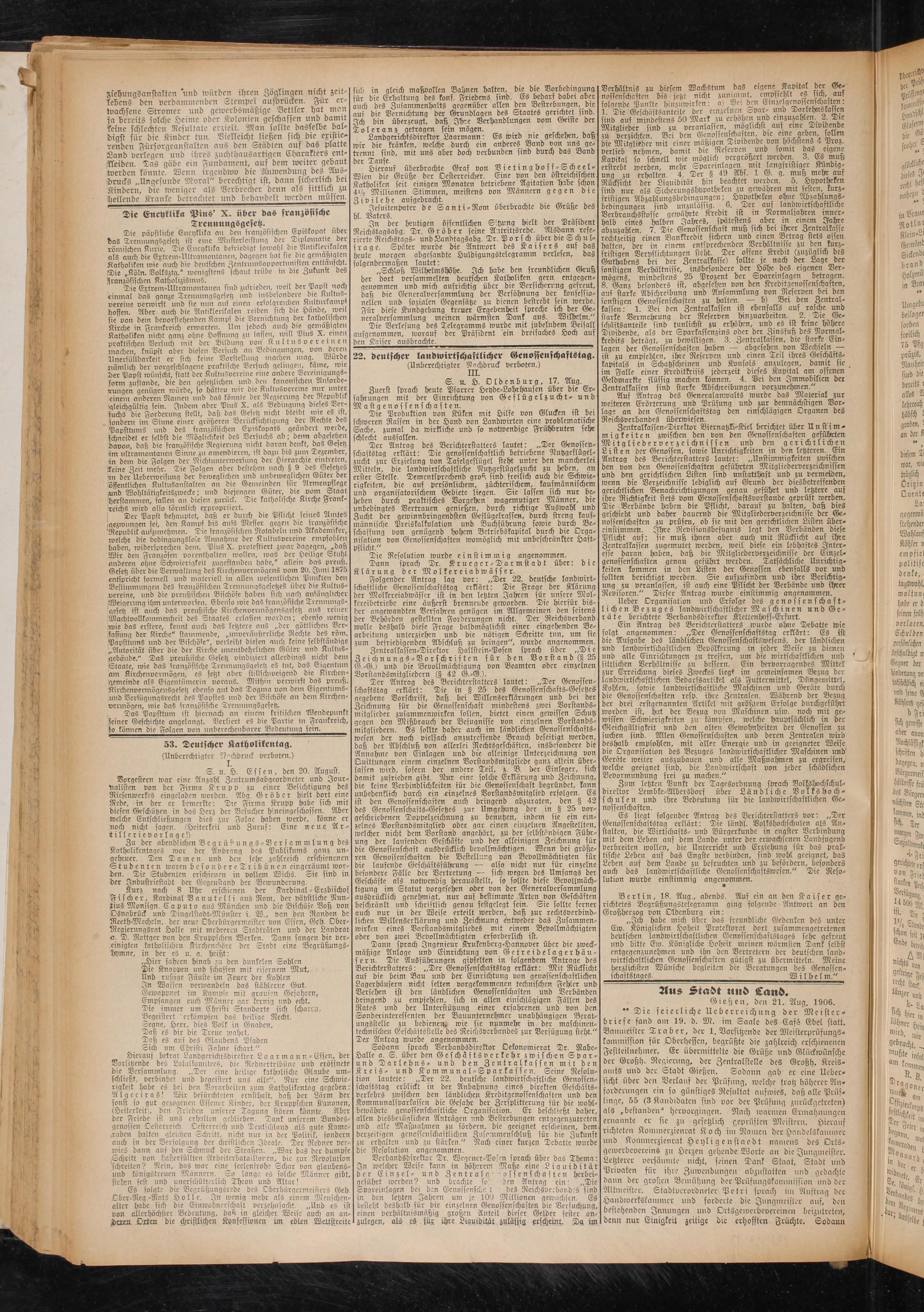 Zu der abendlichen Begrüßungs-Versammlung des Katholikentages war der Andrang des Publikums ganz ungeheuer. Den Damen und den sehr zahlreich erschienenen Studenten waren besondereTribünen eingeräumt worden. Die Studenten erschienen in vollem Wichs. Sie sind in der Industriestadt der Gegenstand der Bewunderung.