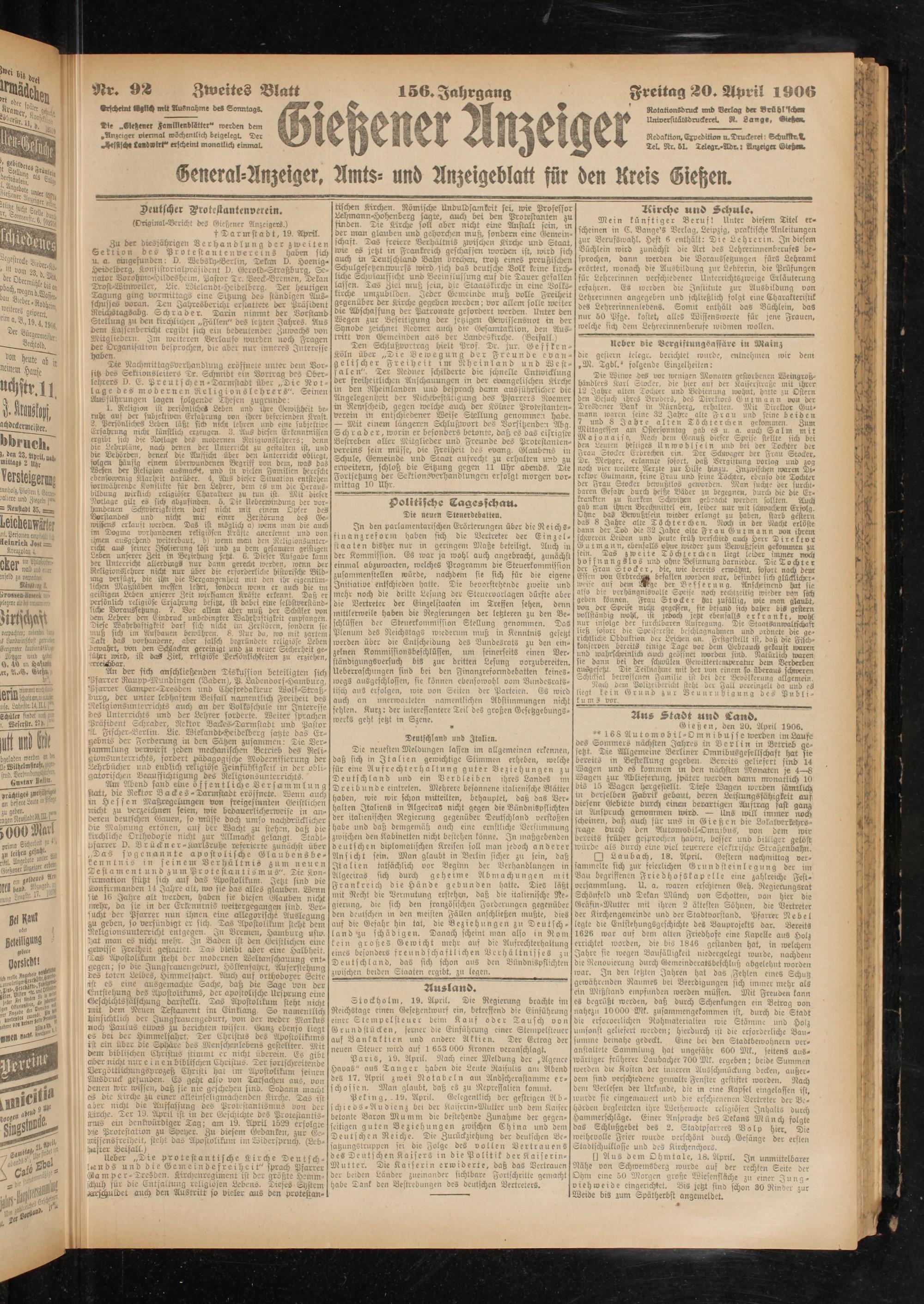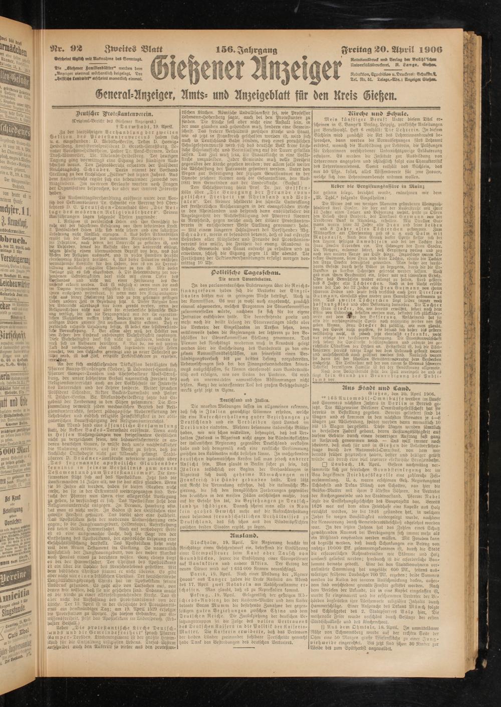 Zweites Blatt 156. Jahrgang Freitag Äv. April 1906
