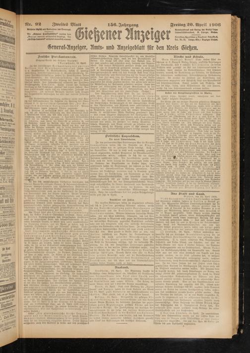 General-Anzeiger. Amts- und Anzeigeblatt für den Kreis Gießen.