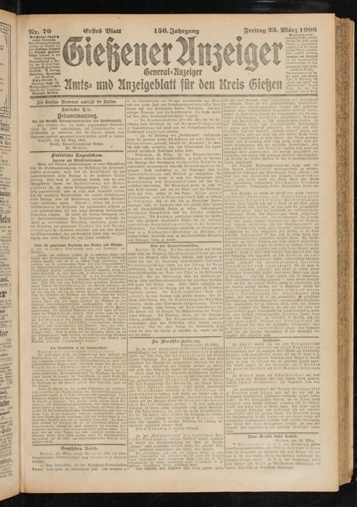 Dem Gießener Anzeiger werben im Wechsel mit dem hessischen Landwirt bie Gießener Kamillen, blätter viermal in der Woche beiqelegt