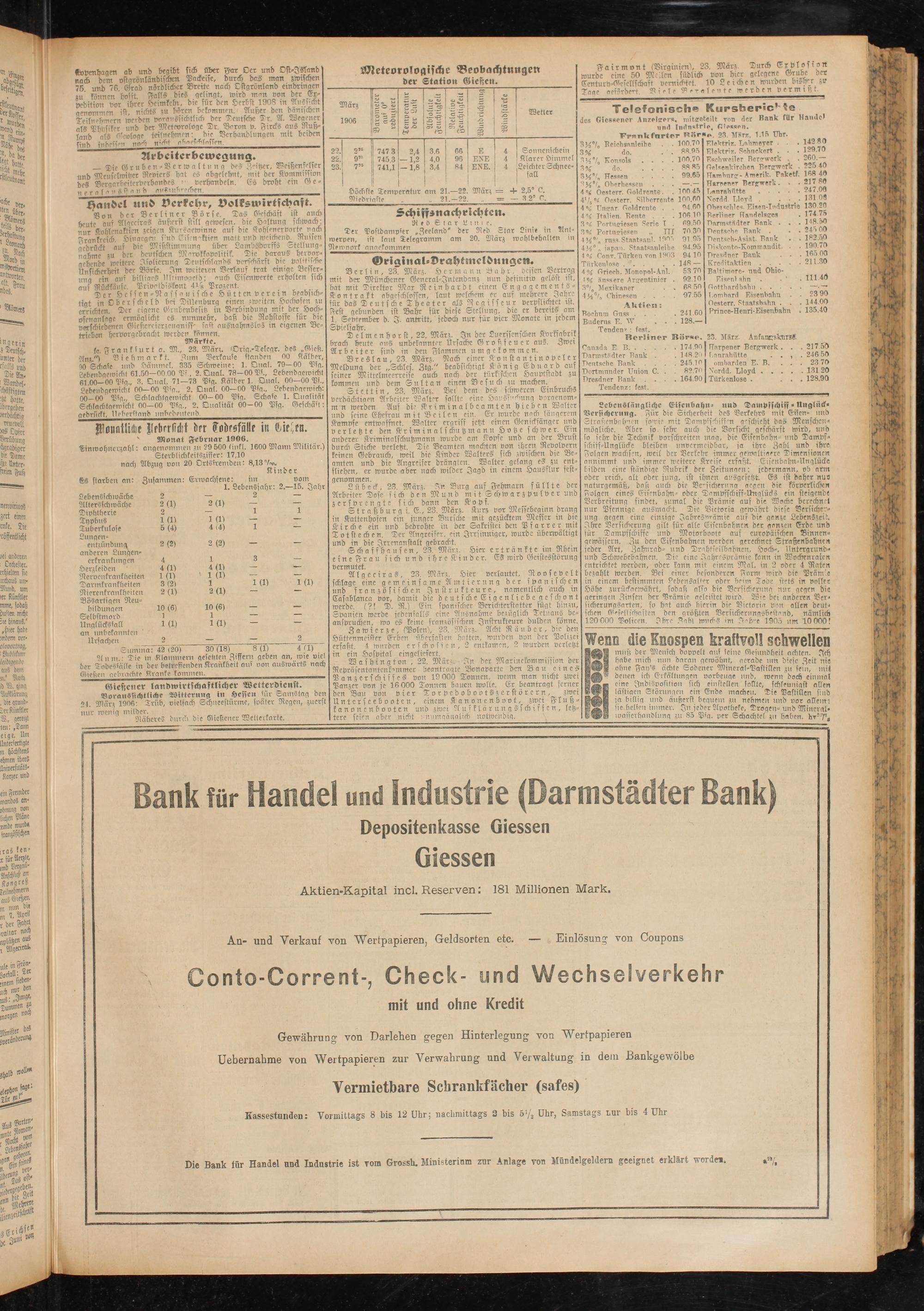 des Giessener Anzeigers, mitereteilt von der Rank fUr Handel und Industrie, Gipseon.