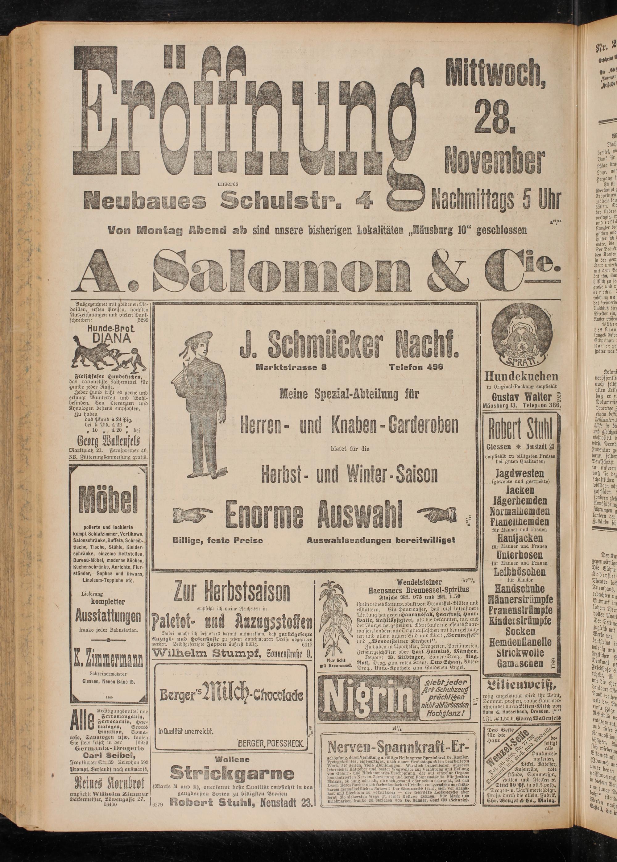 Frankfurter Str. 39 Telephon 593 Prompt.Versandt nach auswärts.