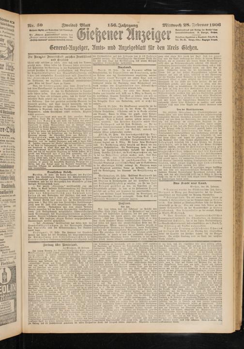 General-Anzeiger, Amts- und Anzeigeblatt für den Kreis Gießen.