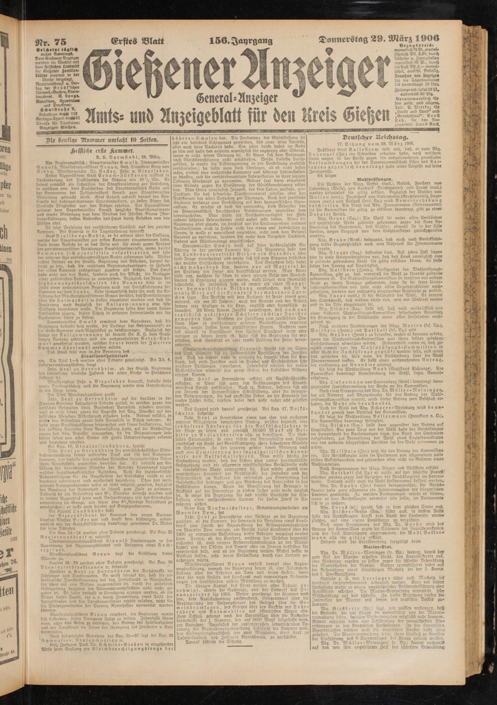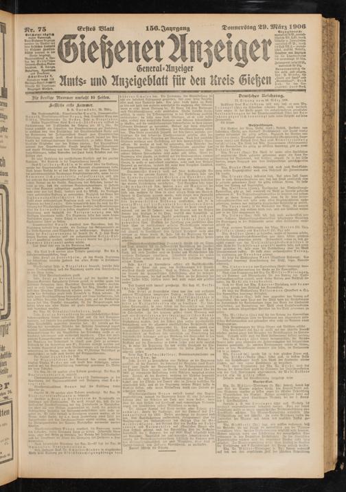 Verlag u.Erved.e^Kbl Adresse für Depeschen: Anzeiger Gießen.