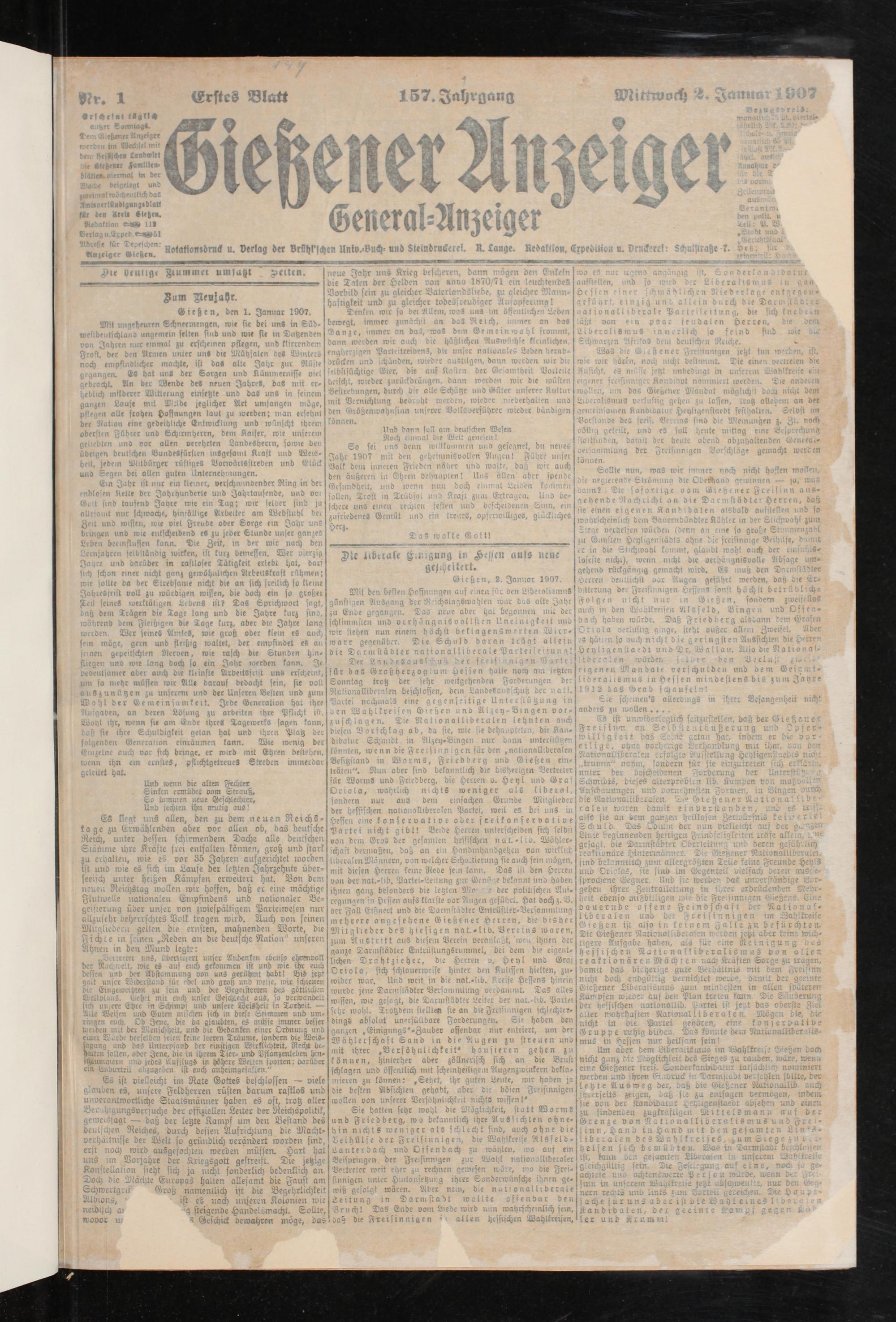 Gießen, 2. Januar 1907.