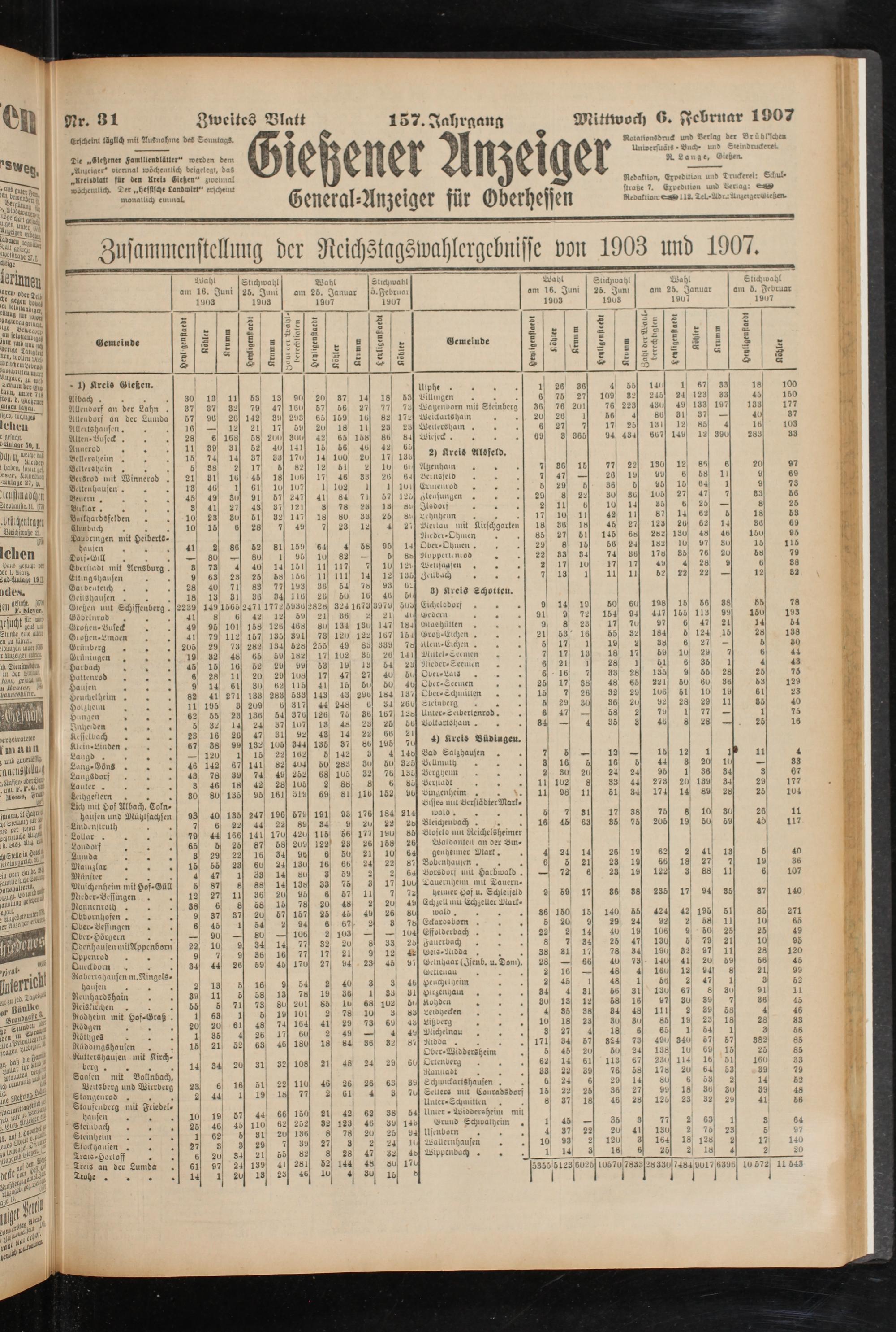 Tie „Olttzener ZamtllendlLlter" werden dem ownnal wöcheuitich beigeleqi, da4 „Krtublatt für öta Kreis Liehen" zweimal wöchentlich. Ter „hesstsche Landwirt' erscl)«uit monatlich euuuaL