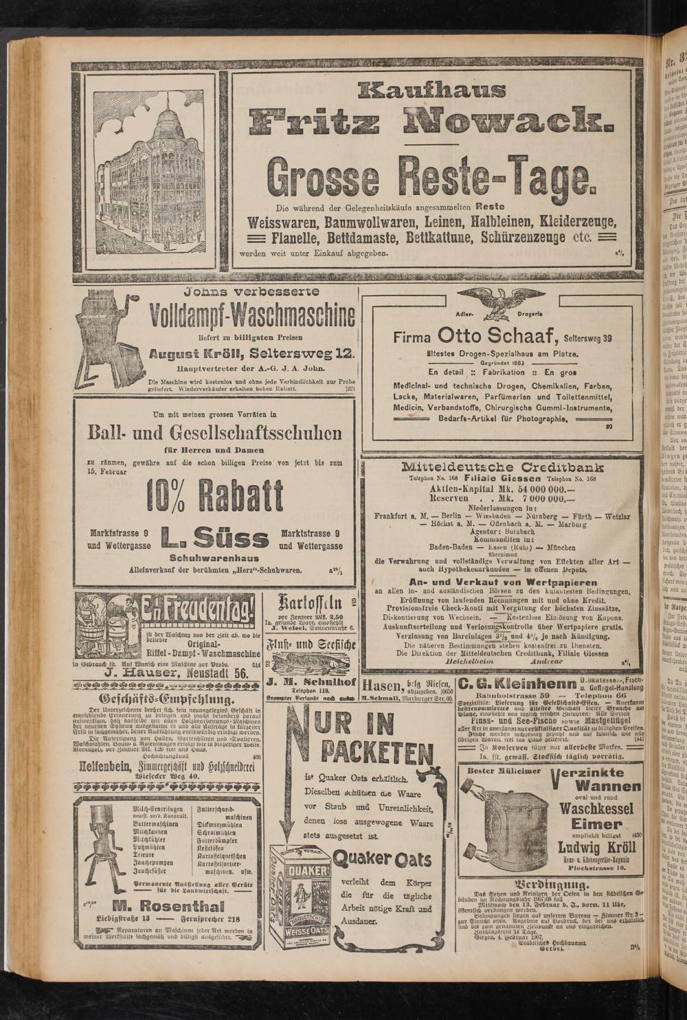 Firma Otto Schaaf, Seltersweg 39 ältestes Drogen-Spezialhaus am Platze. ■ -...... Gegründet 1883 ■ - -