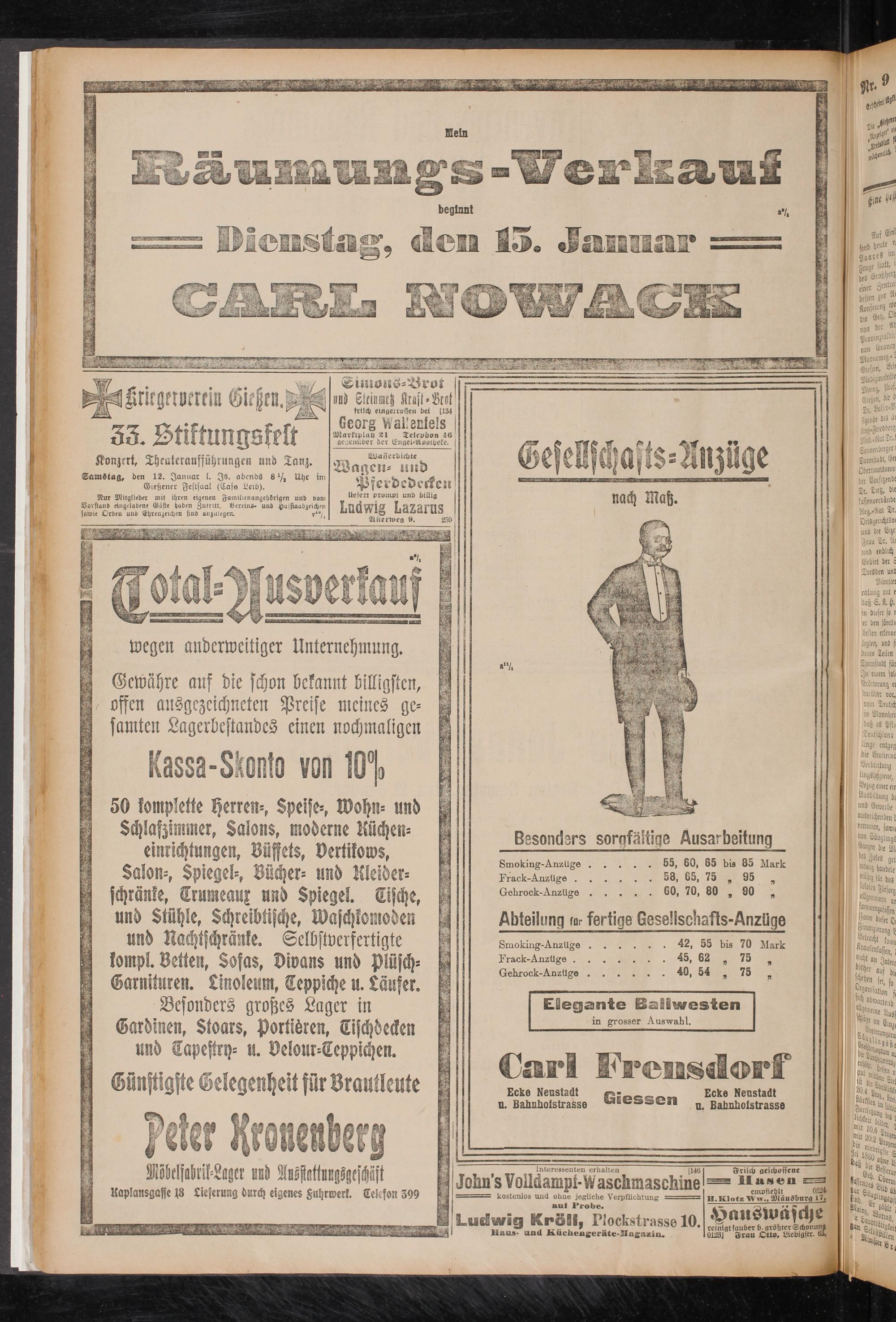 Gewähre auf die schon bekannt billigsten, offen ausgezeichneten Preise meines gesamten Lagerdestandes einen nochmaligen