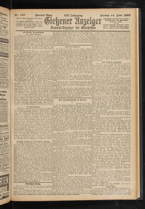 Die „Gießener FamittenblStter- werden dem .Anzeiger' viermal wöchentlich beigelegt, das „EreUblatt für den Kreis Liehen" zweimal wöchentlich. Der „hessische Landwirt" erscheint monatlich einmal.