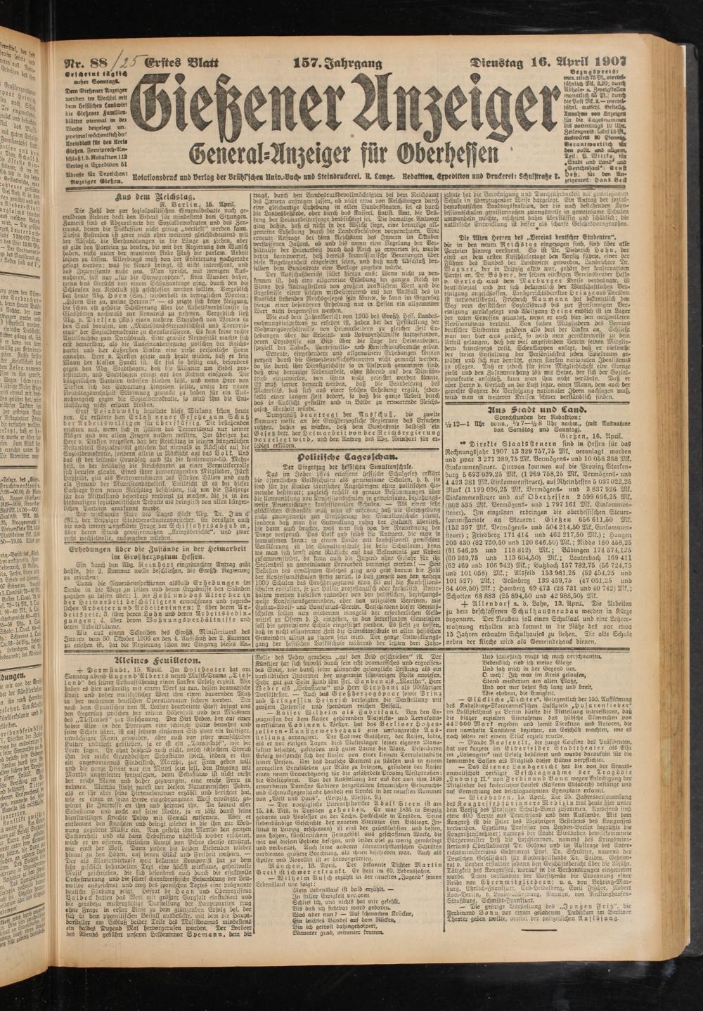 Nr. 88 /tf'Gvftc§ Blatt 157. Jahrgang Dienstag 16. April 1907