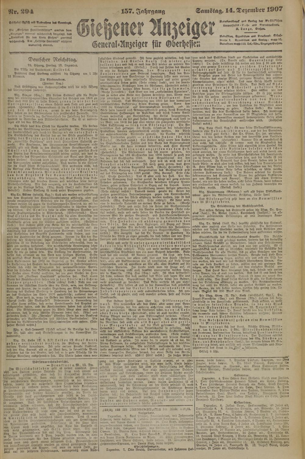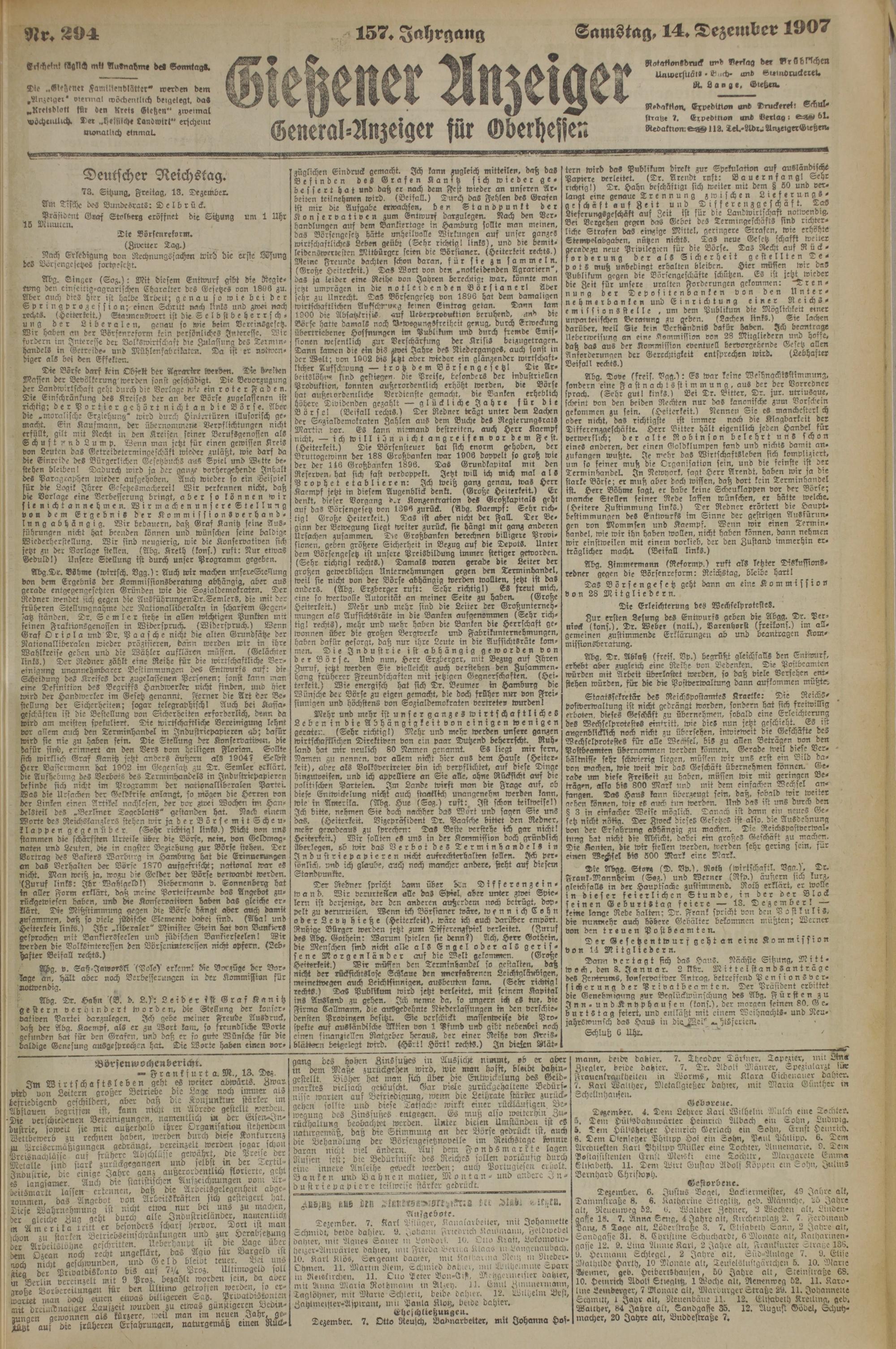Samstag, 14. Dezember 1907