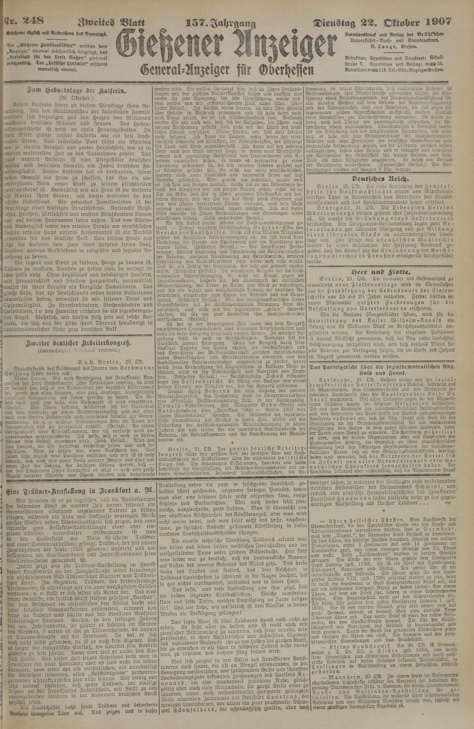 Dienstag ÄÄ. Oktober 1907