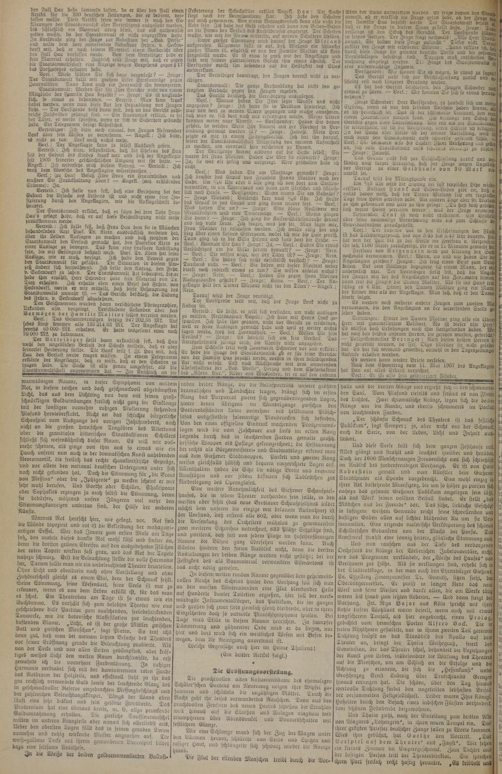 Ten Geschworenen wurden dann verschiedene Photographien Urkunden u,w. vorgelegt. Verschiedene Urkunden über bas Vermögen der Familie Molitor sollen verlesen werden