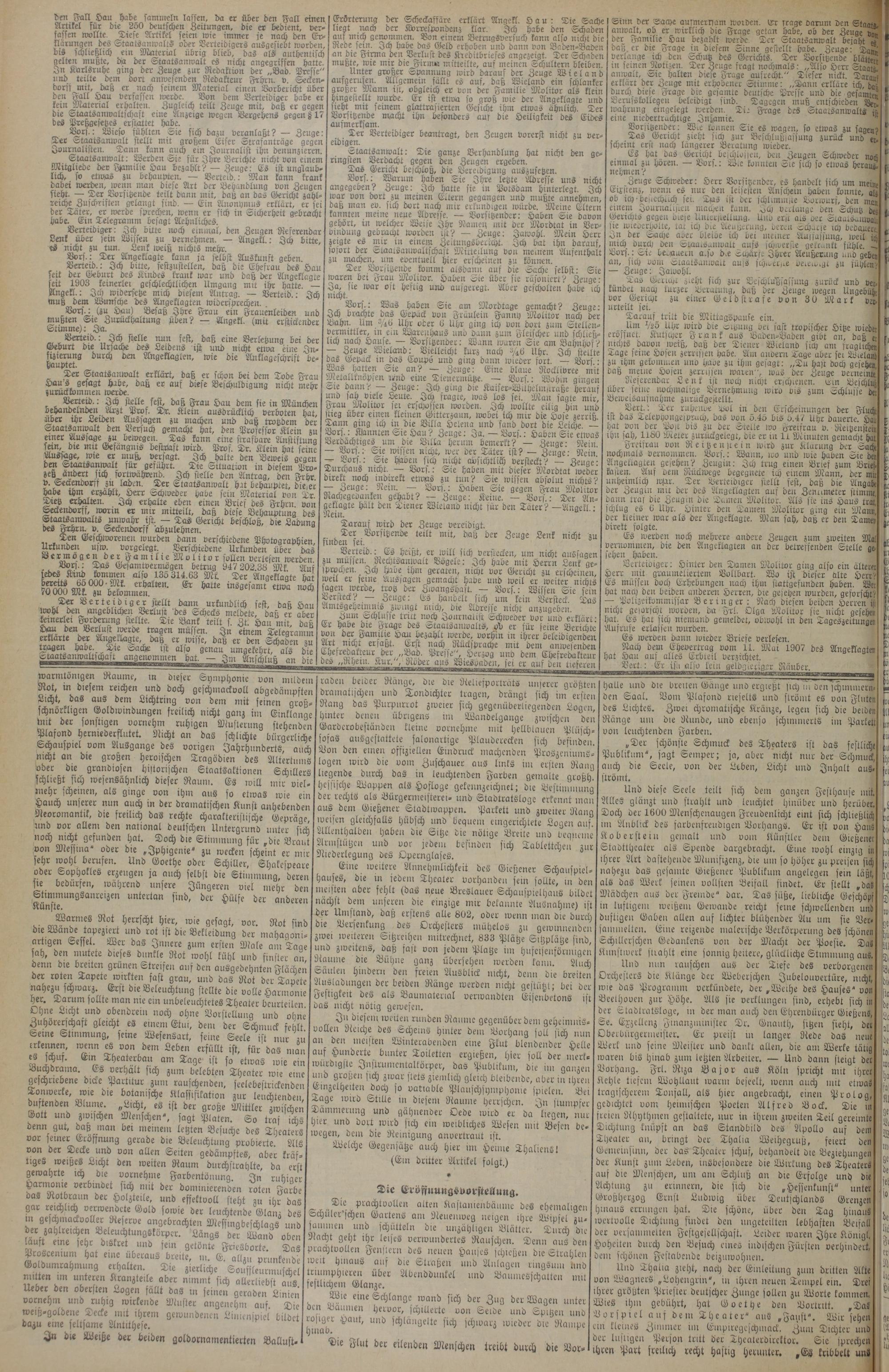 Staatsanwalt: Werden L>ie für Ihre Berichte nicht von einem Mitgliede der Familie Hau bezahlt? — Zeuge: Es ist unglaublich, so etwas zu behaupten. — Verleid.: Man kann krank
