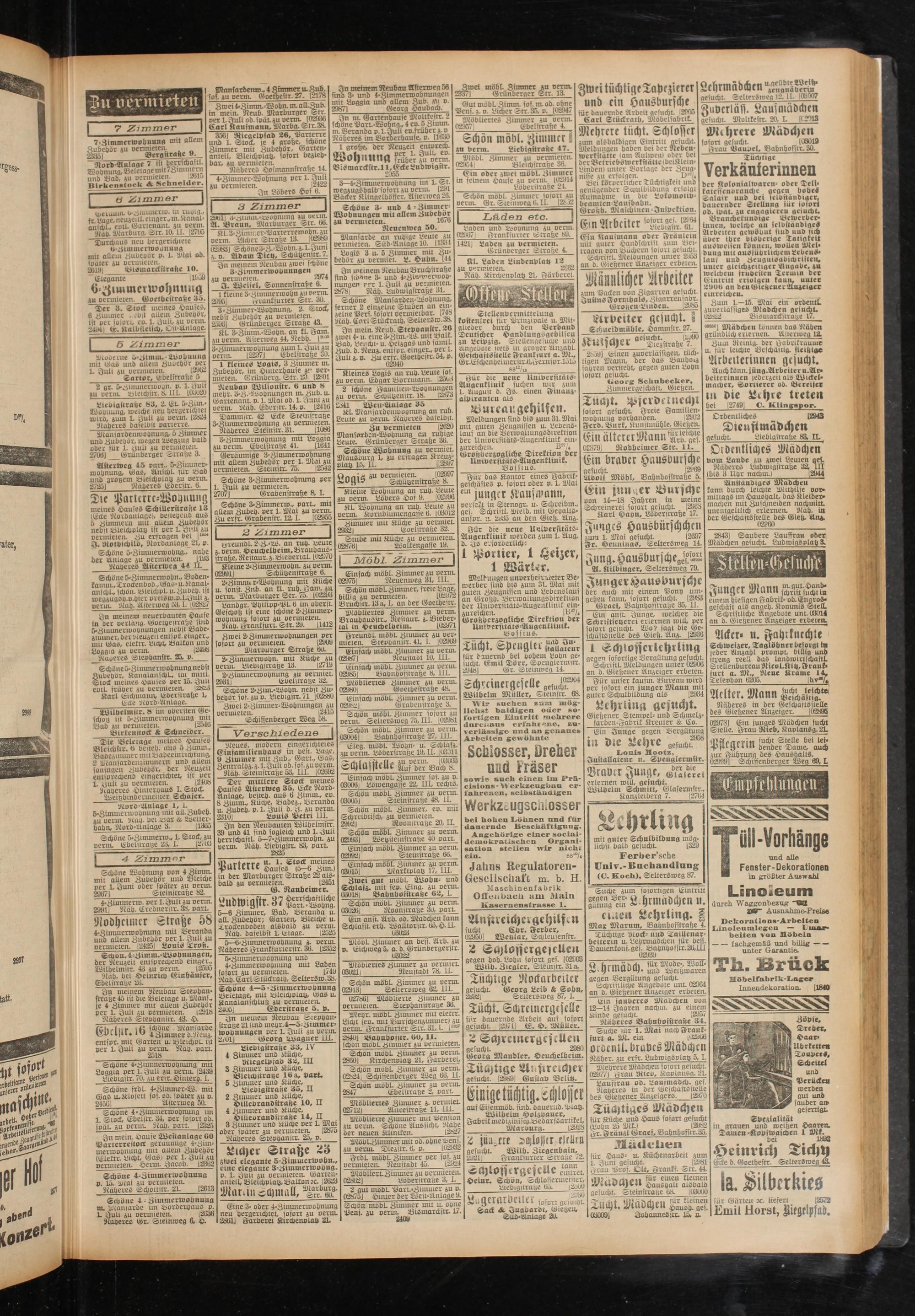 Bäcker Klingelhöffer, Asterweg 28. | Schön möbl. Zinuner foiort zu 'Ausnahme in bic Lokomottv- - < . ^ « q:—~ I Perm. Gr.Steinweg6,ll. [2d^2, bcamtcn-Laufbabn.