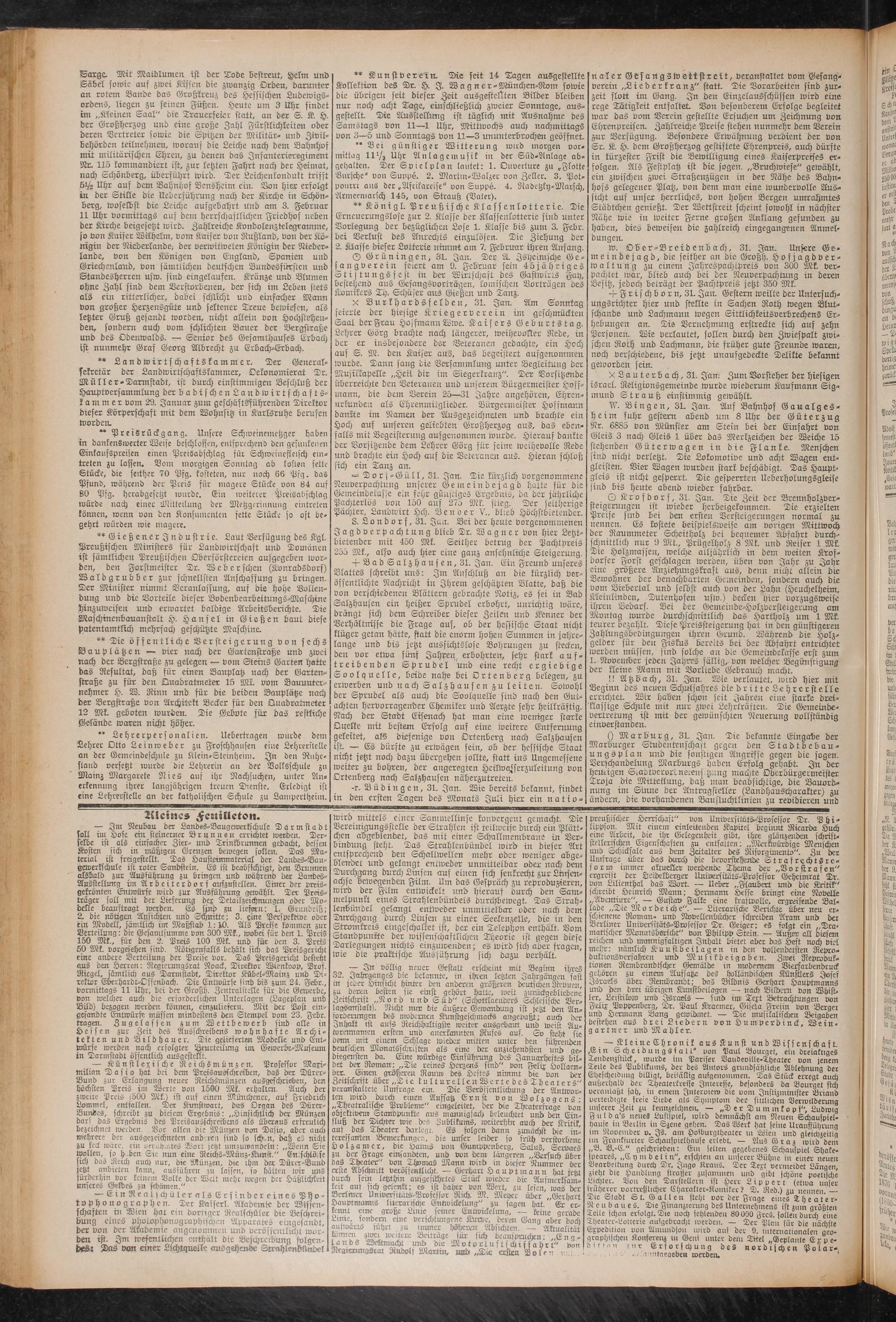 O Grüningen, 31. Jan. Der A. Jsyeimsche Gesangverein feiert am 9. Februar sein 45jähriges Stiftungsfest in der Wirtschaft des Gastwirts Fay, bestehend aus Gesangsvorträgen, komischen Vorträgen des Komikers Th. Schäfer aus Gießen und Tanz.