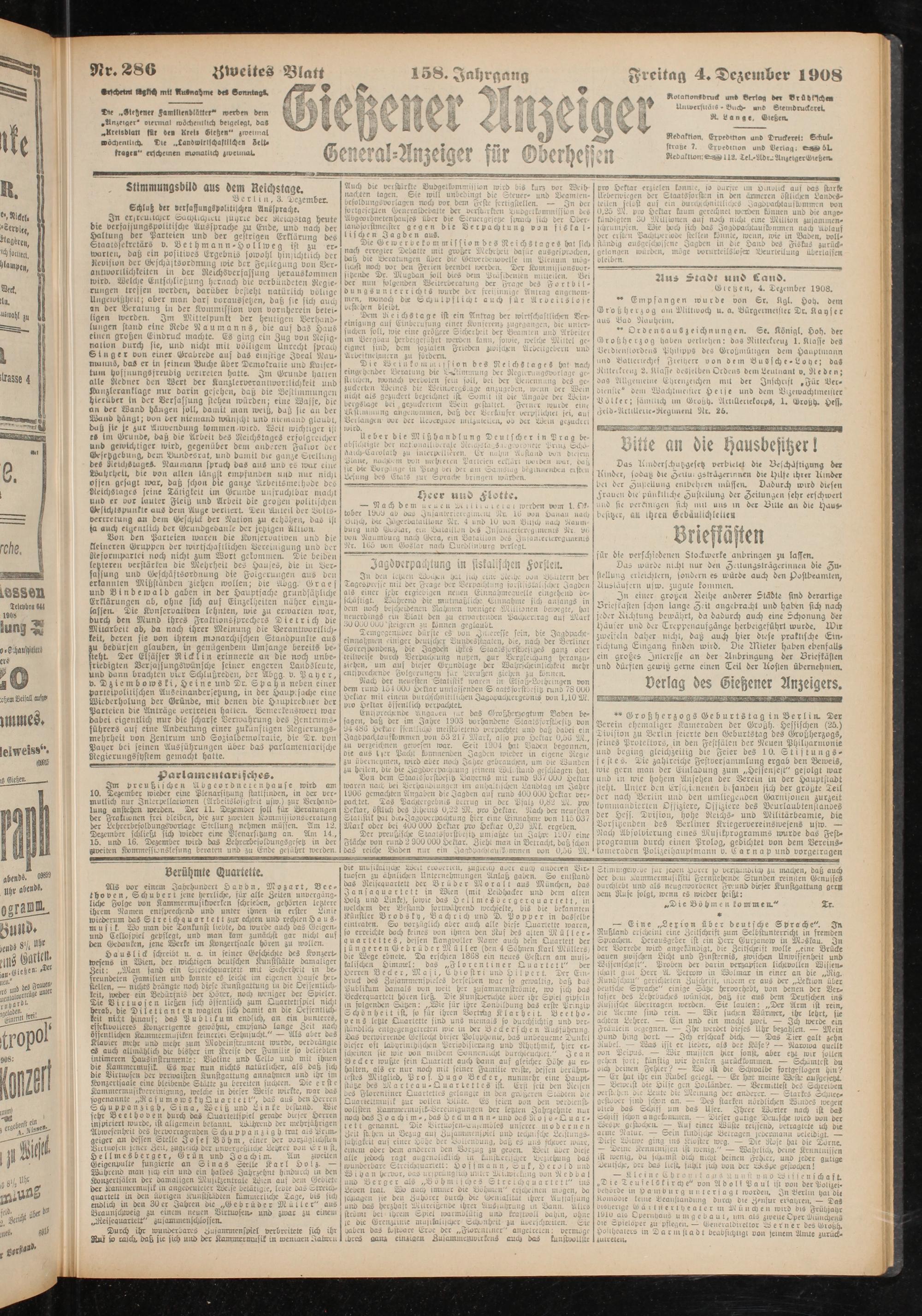 Freitag 4. Dezember 1908