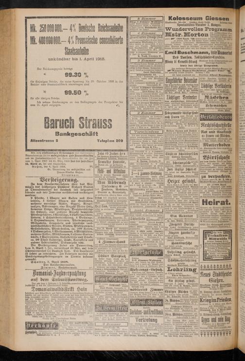 Die Versteigerung findet am Donnerstag, dem 9. April l. Fs., vormittags IO Ahr, auf dem Obernseenerhof bei Laubach statt. Der Kaufpreis ist sofort zu entrichten. Im Nebrigcn werden die Bersteigerungsbedingnttgen im Termin bekannt gemacht.
