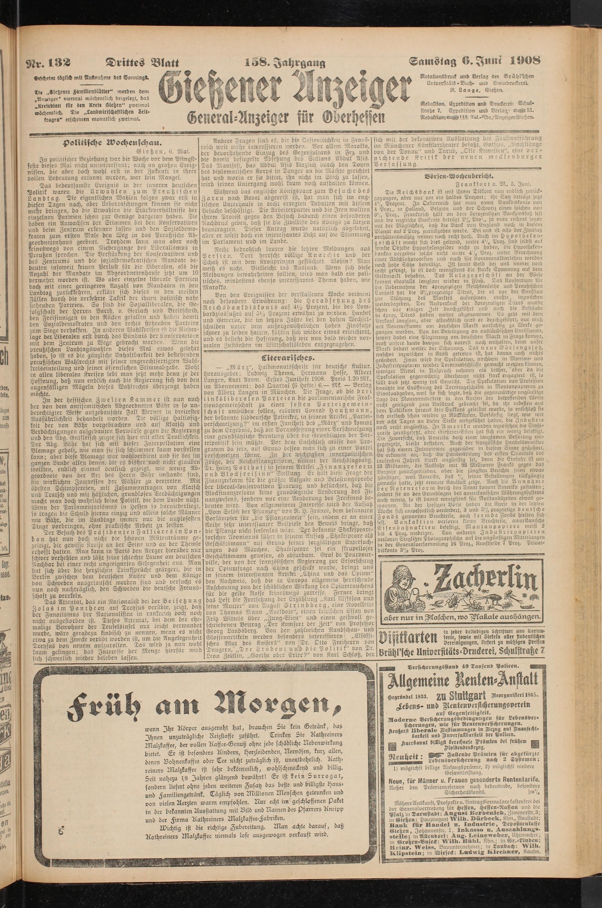 Samstag 6. Juni 1908