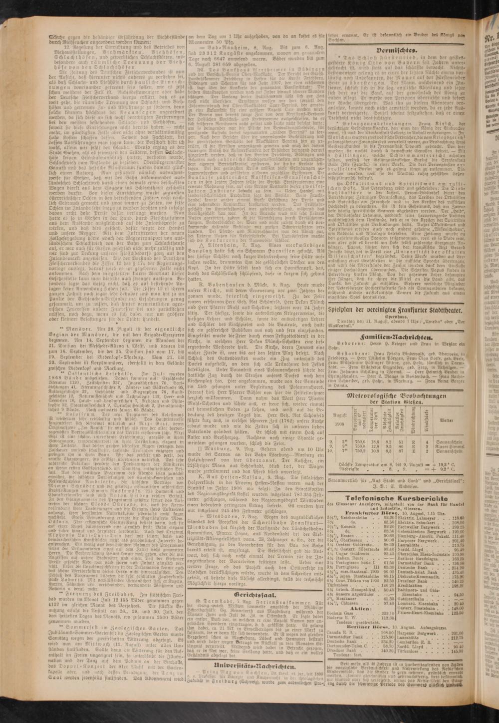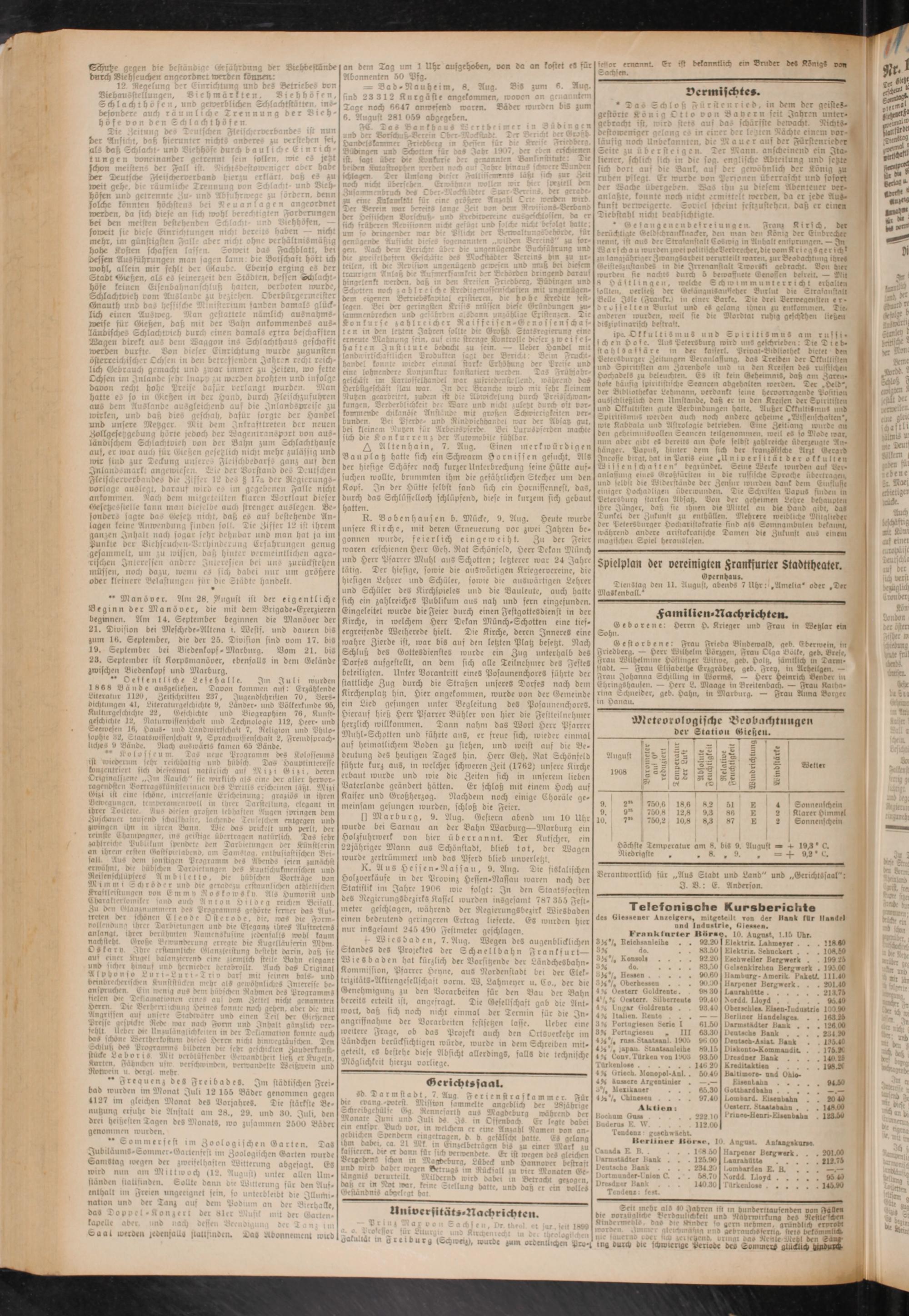 — Bad-Nauheim, 8. Aug. Bis zum 6. Aug. und 23 312 Kurgäste angekommen, wovon an gekanntem Tage noch 6647 anwesend waren. Bäder wurden btS zum 6. August 281 059 abgegeben.