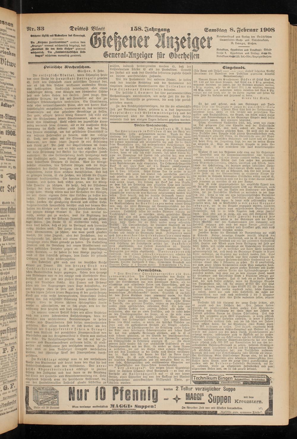 Drittes Blatt 158. Jahrgang Samstag 8. Februar 1908